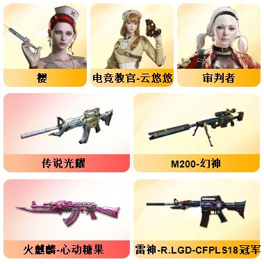 100V星神/六烈龙/生化无需换弹/QBZ蔷薇/白鲨COP/王者春/毁灭音效+雷神音效+极光音效/毁灭耀金/雷神白鲨耀金/火麒麟EVEN+华夏之心+轻羽AG皮肤