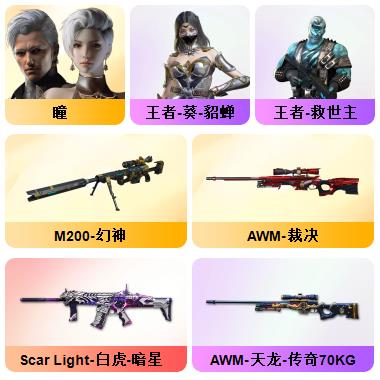 最新神威莲华夜影梦魇幽冥幻神三皮星神双皮裁决运输船皮+裁决音效卡白虎霓虹皮+白虎音效卡G36-幻影炽芒蝶刃冠军皮雷神宠儿荣耀之魄云悠悠晴雅20王者