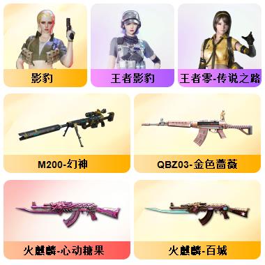 竞技荣光+QBZ+COP-雷霆*2+柯尔特-竞技荣光*3+USP雷暴*1+12套雷+音效卡(火麒麟+雷神+毁灭+黑骑士)+套装(竞技荣光套)