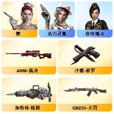 200V:新枪娘暗刃斯泰尔❤️白鲨幻神❤️白鲨QBZ03❤️白鲨麒麟刺❤️❤️王者幻神❤️传说光耀❤️夜魔7套❤️网剧冠军套6盘6烈爆破生化挑战号
