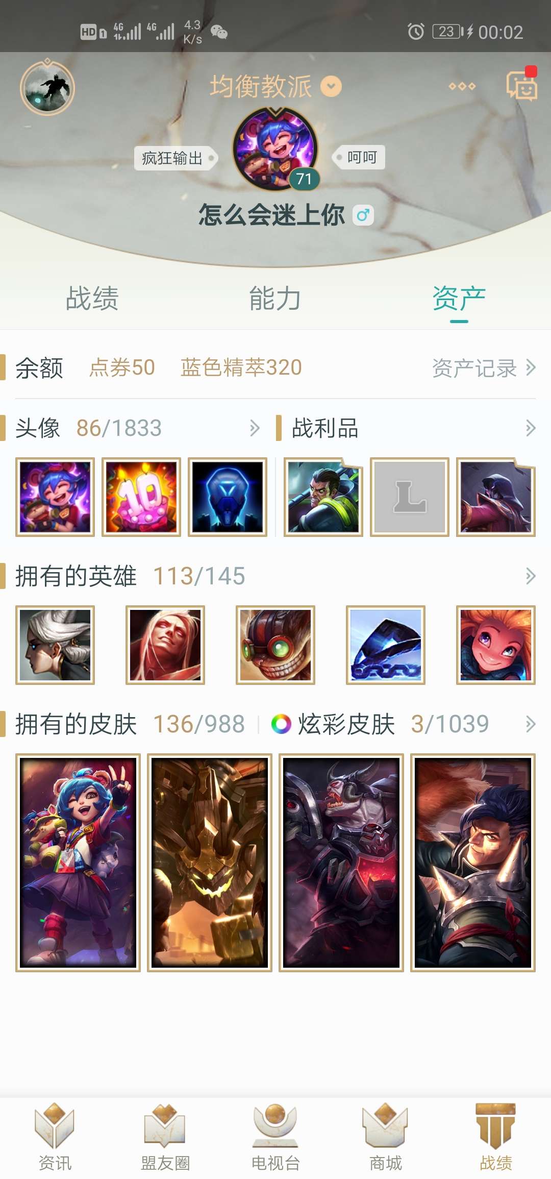 均衡教派114英雄139皮肤7套符文皮肤花木兰西部牛仔未来战士赵云关羽吕布至高之拳波比巧克力等等开黑