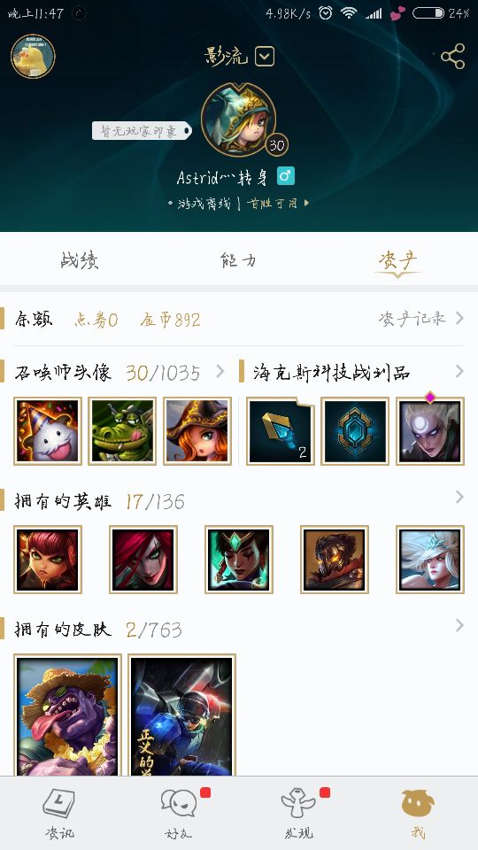 影流区lol号30级/17英雄。