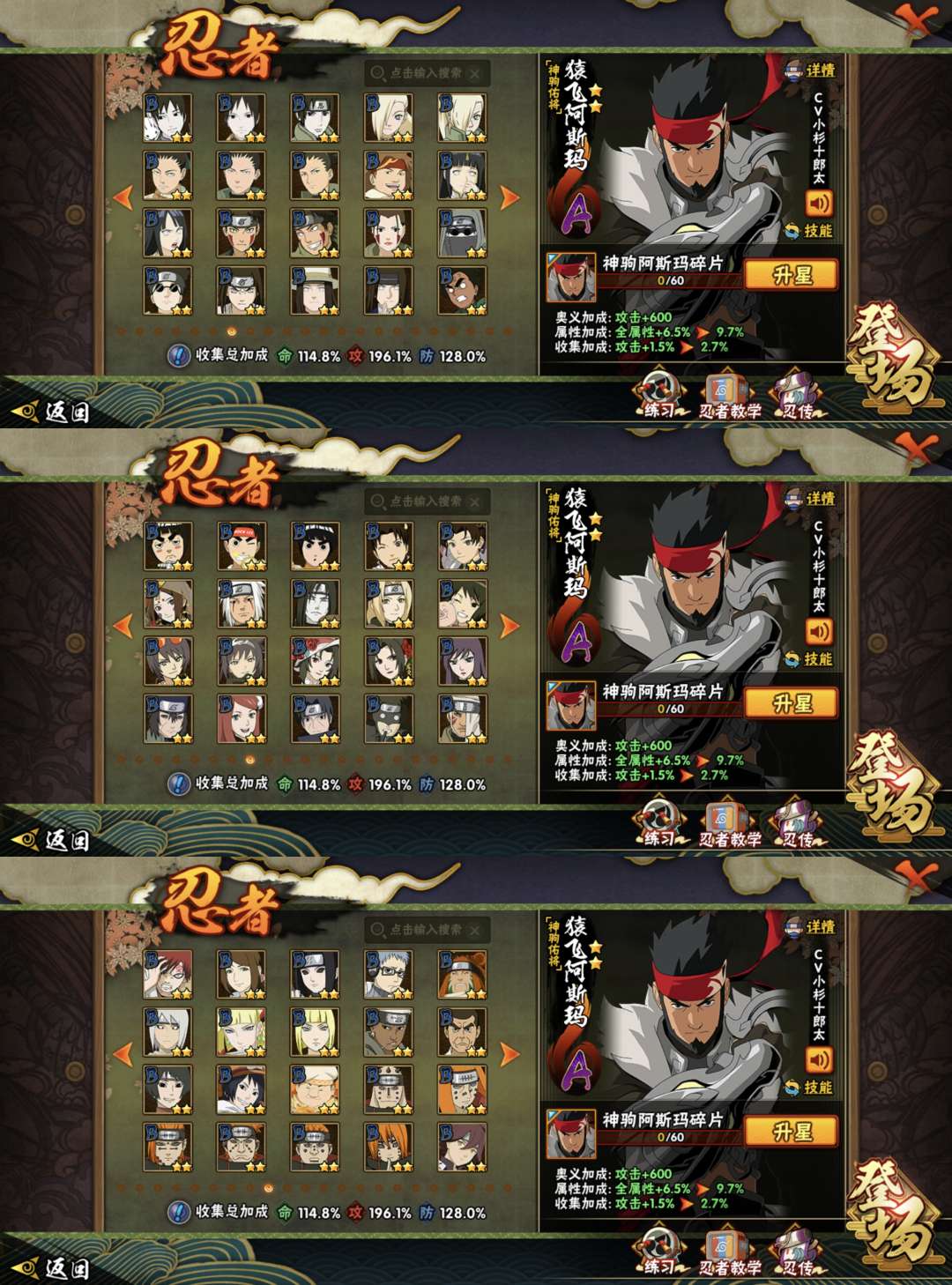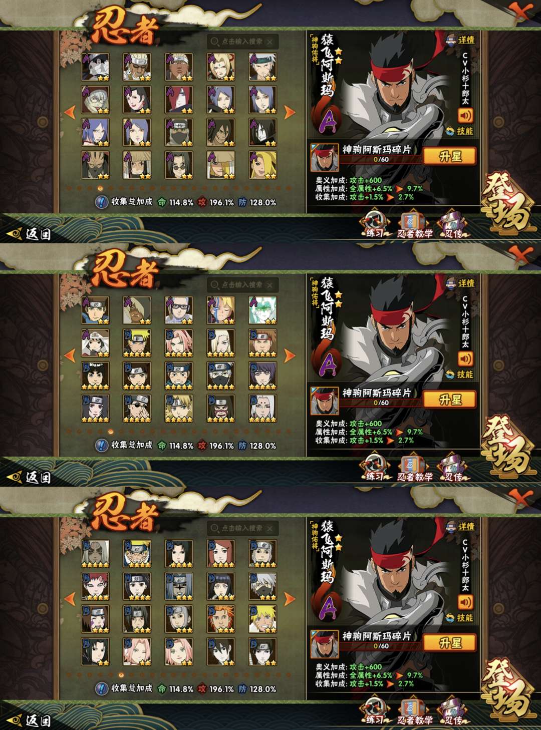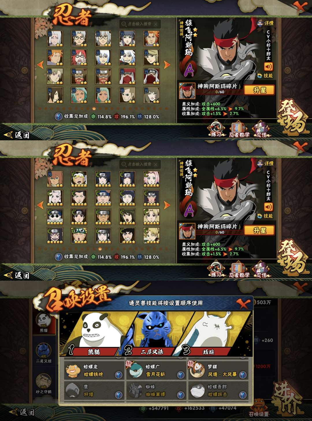 《神驹阿斯玛》《漂泊小楠 漂泊扉间 再不斩》妖怪纲手 《新春小楠 水门 鼬 止水》高级通灵熊猫 二尾空导