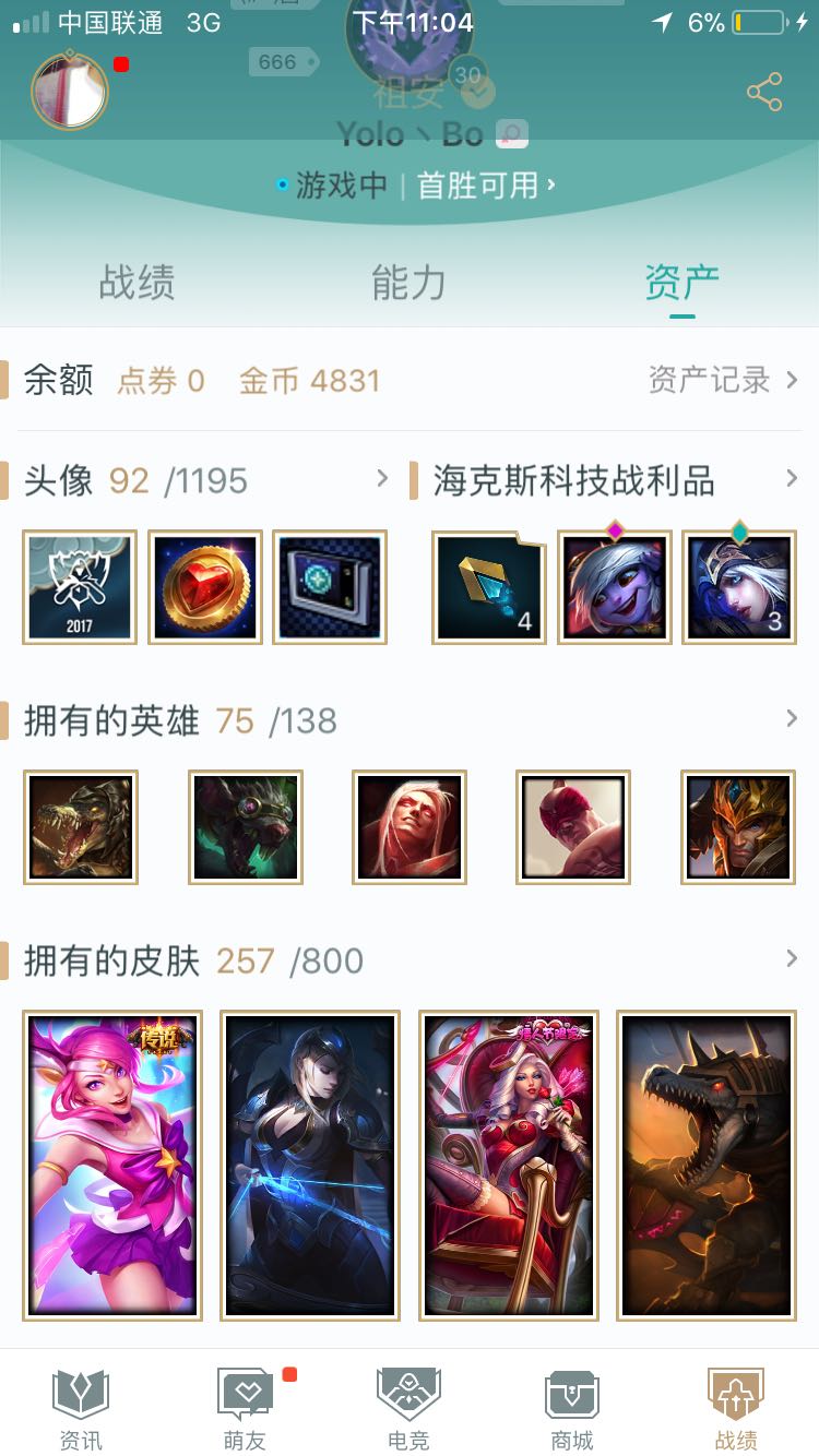 首页 > 租号大厅 > 英雄联盟 > 联盟一区/祖安 > ⭐看完以下⭐瞎玩随意,普通的游戏号,排位随意打,75英雄271皮肤,艾希控全皮肤嘻嘻。狗年齐全,拉克丝好看…
