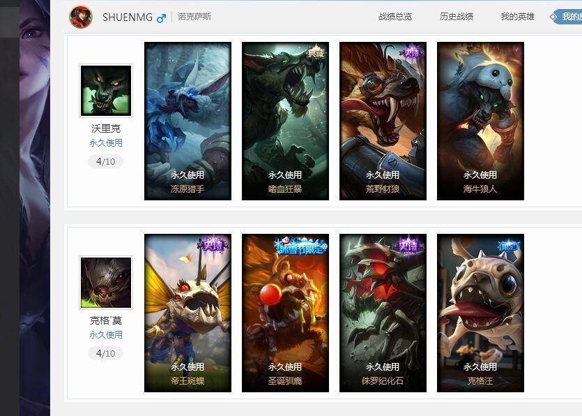 首页 > 租号大厅 > 撸阿撸 > 电信区/诺克萨斯 > 洛克萨斯区黄金号 满英雄422个皮肤 该有的皮肤都有 就不一一说了 保证不会失望