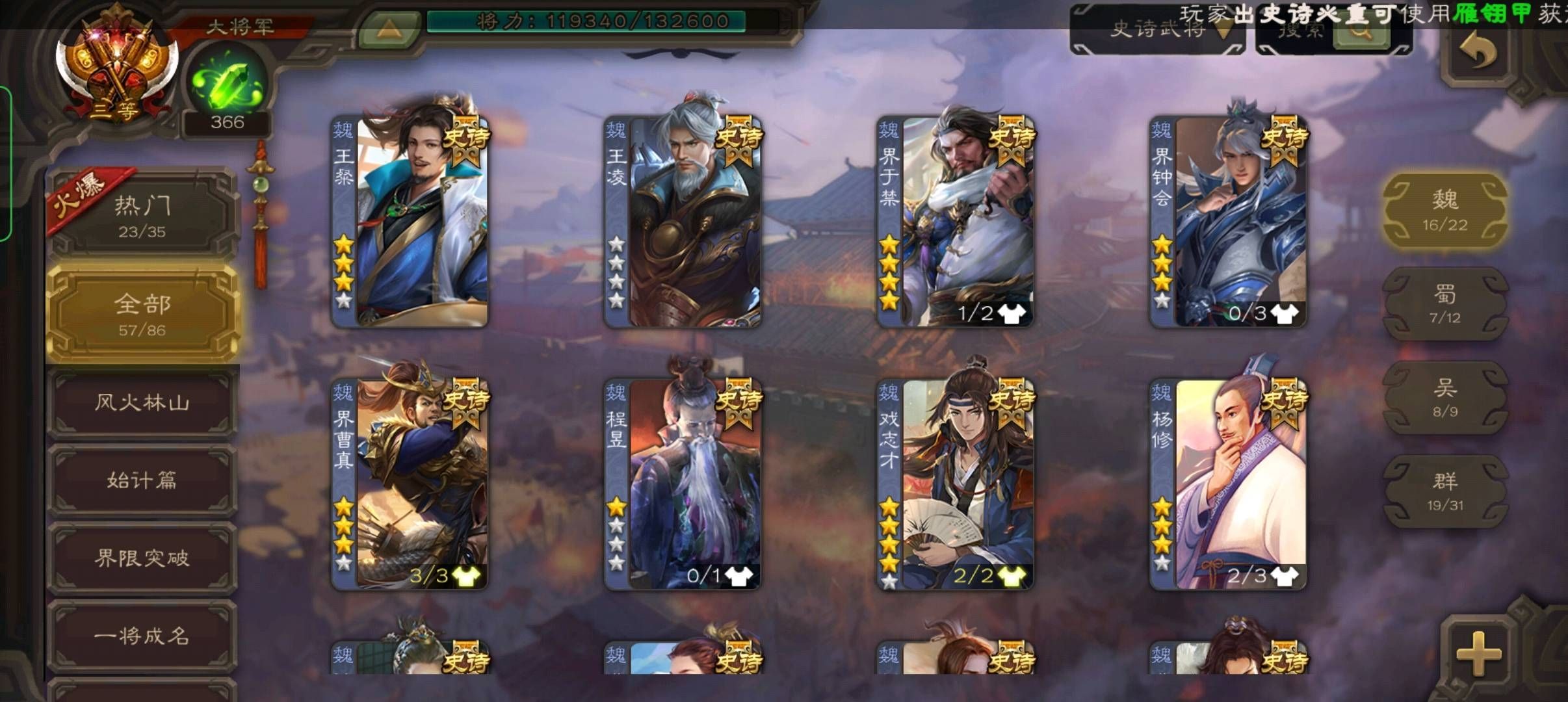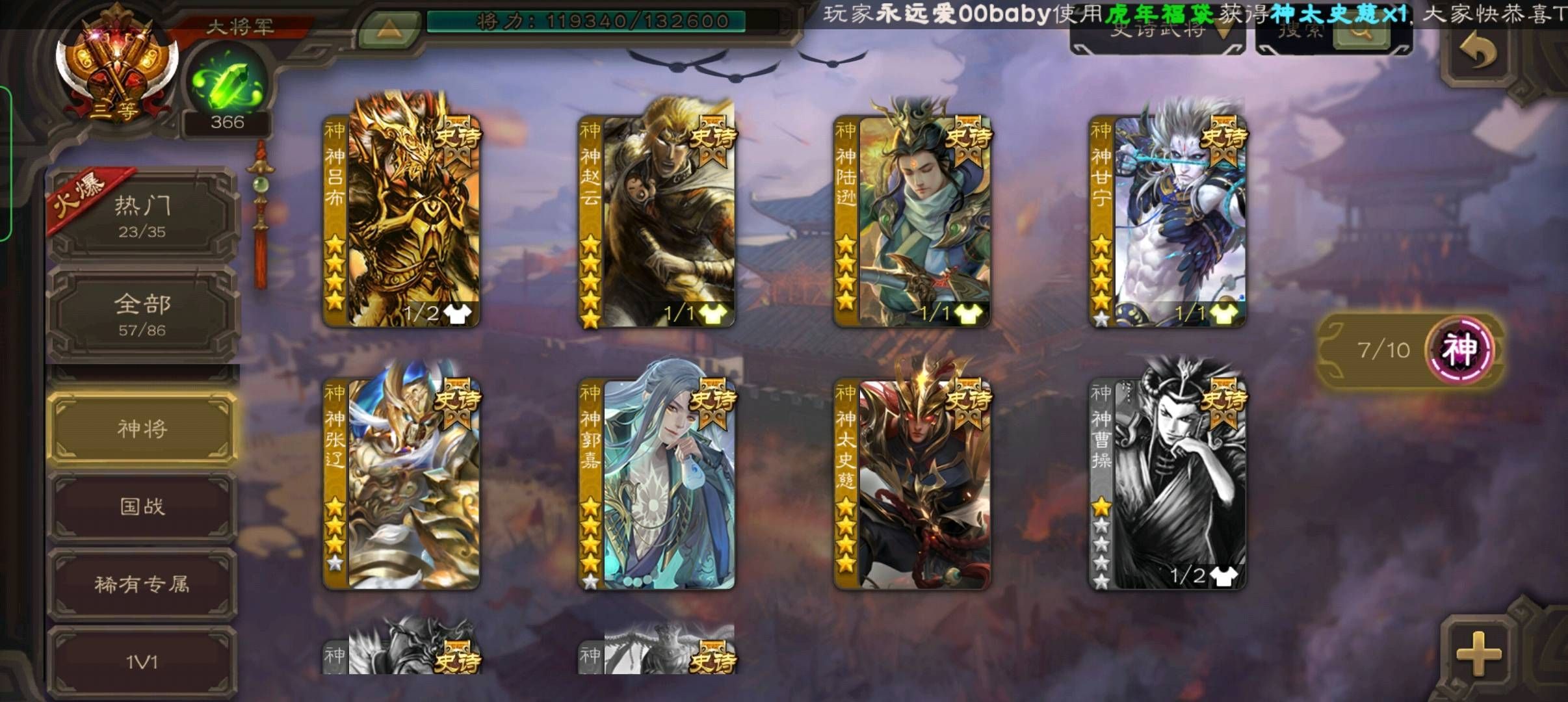 移动版官方25包天,57史诗大将军🔥神郭嘉🔥动刘焉🔥动神甘宁🔥杜预杨彪/马钧大宝动羊徽瑜/老仙神太史慈