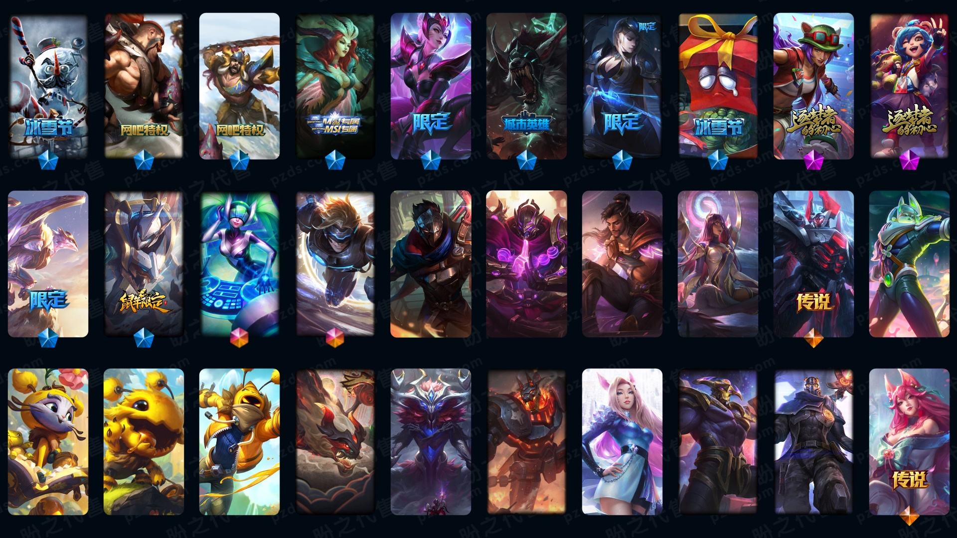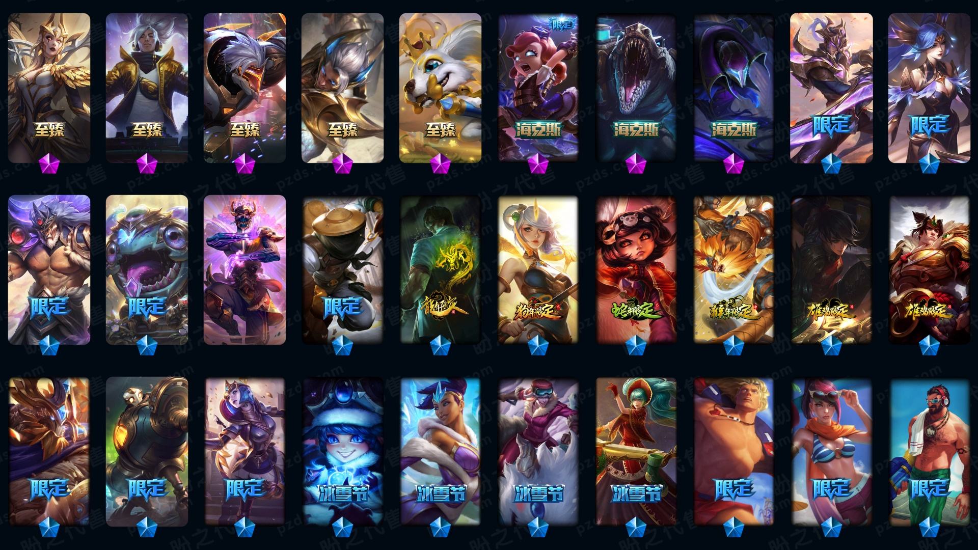 1892皮肤〓可排位妹子号白银〓全英雄〓31神话〓23臻彩〓303炫彩〓至臻亚索乐芙兰腕豪劫海克斯龙虾神王神拳星守护源计划套学院未来战士丧尸灵魂莲华