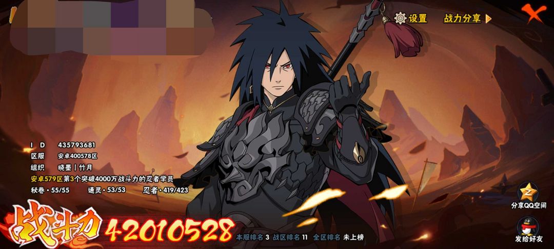 • 游戏区服:火影忍者 / 安卓 / QQ账号