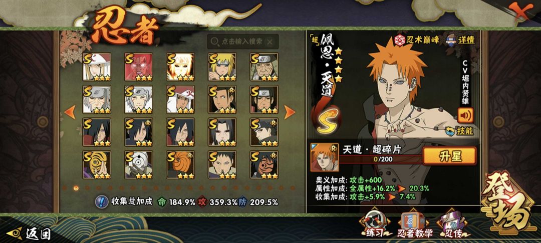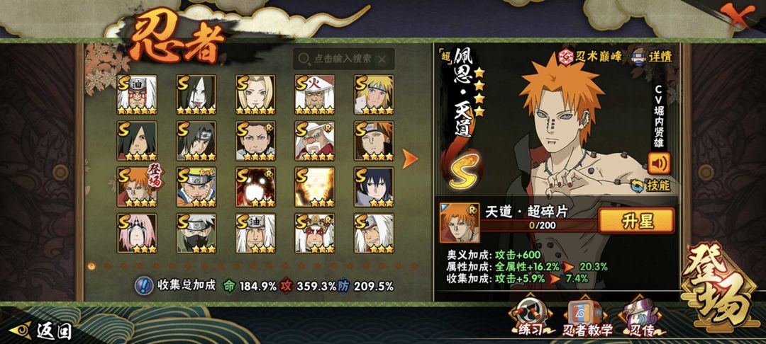 妖怪奇谭纲手✨夏日鼬✨侠影佐助✨须佐止水✨55S 97A✨3400万✨400万攻✨近全忍者400忍