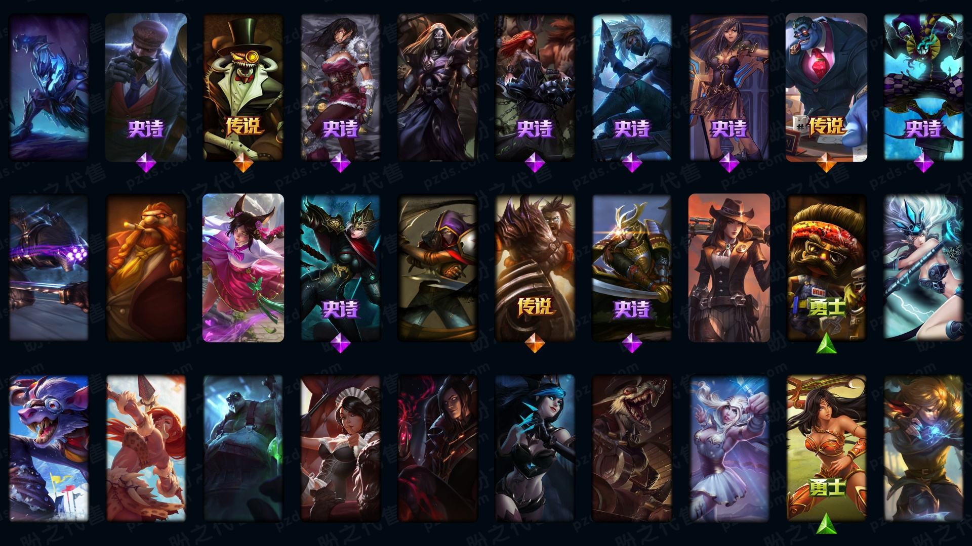 1000皮肤♥龙瞎♥海克斯摄魂VN人马♥送披萨的小姐姐全炫彩♥周年限定♥玉剑传说♥泳池电玩战队