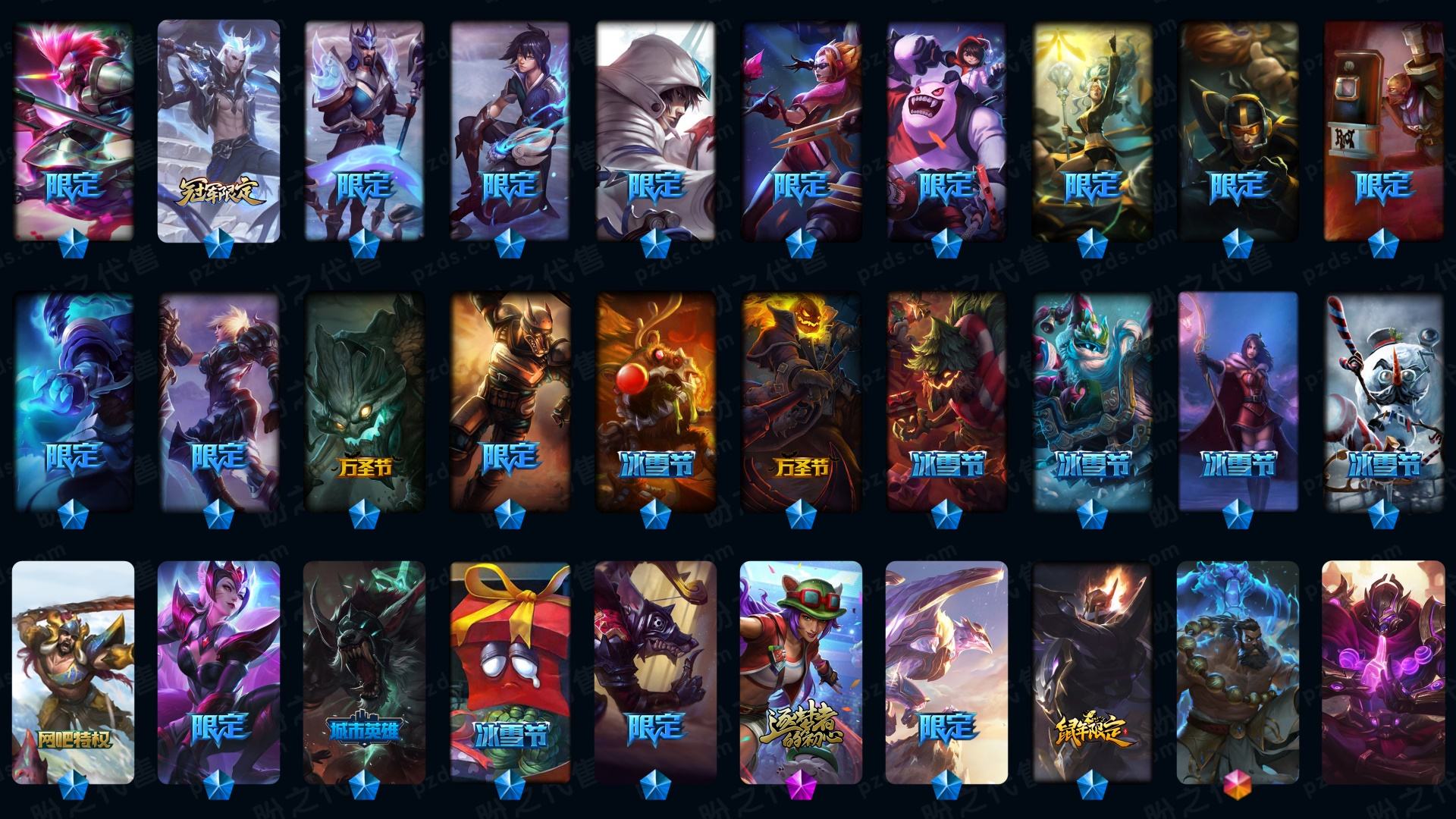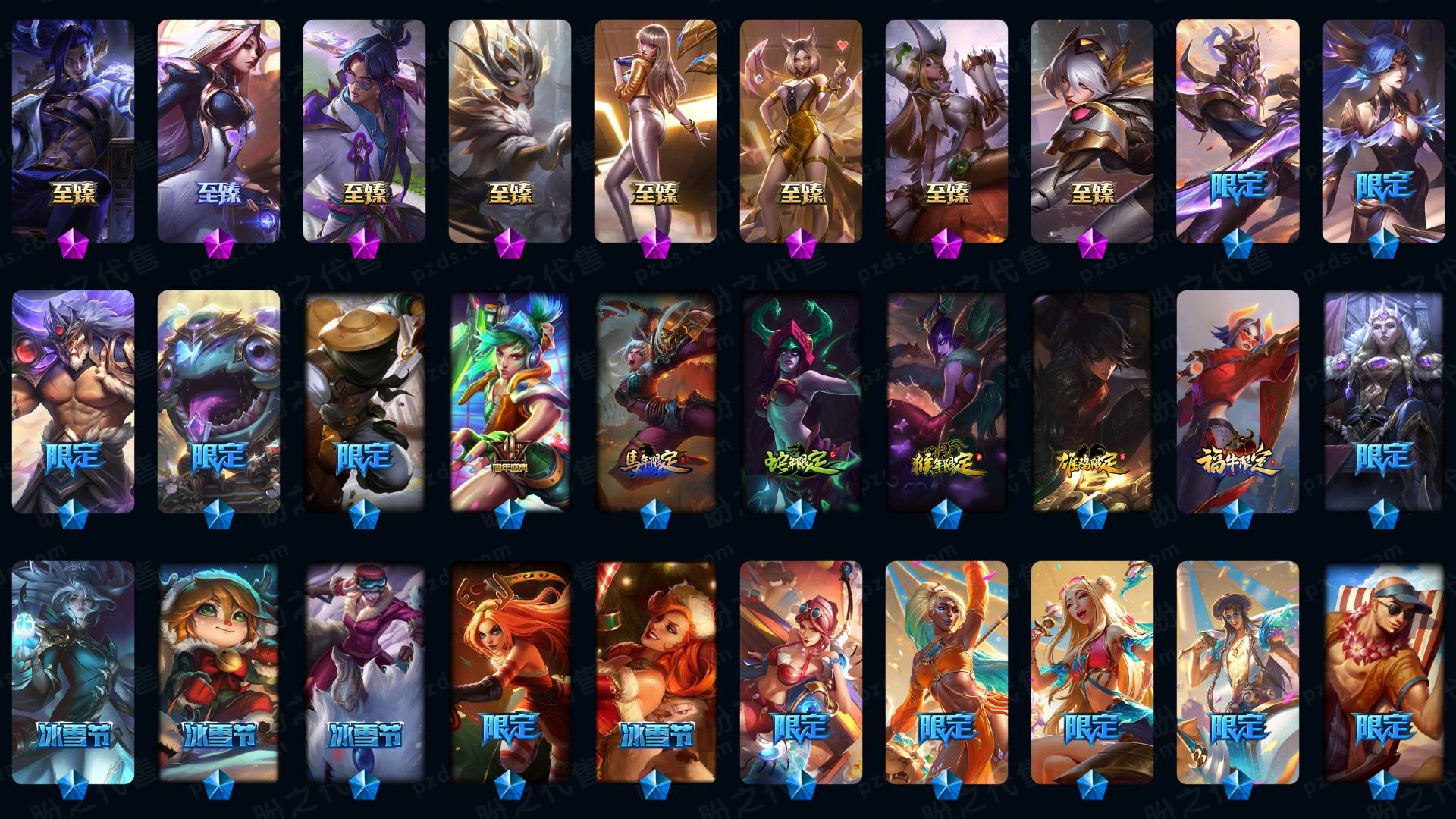 600p45神话☆灰烬斗魂派克-水晶圣骑-至臻真伤塞纳-至臻青花瓷北极星等-龙瞎-北极星皎月-泳池-鼠年鸡年-新万圣节等-新皮超多幻灵女枪金克斯-详情看账号描述