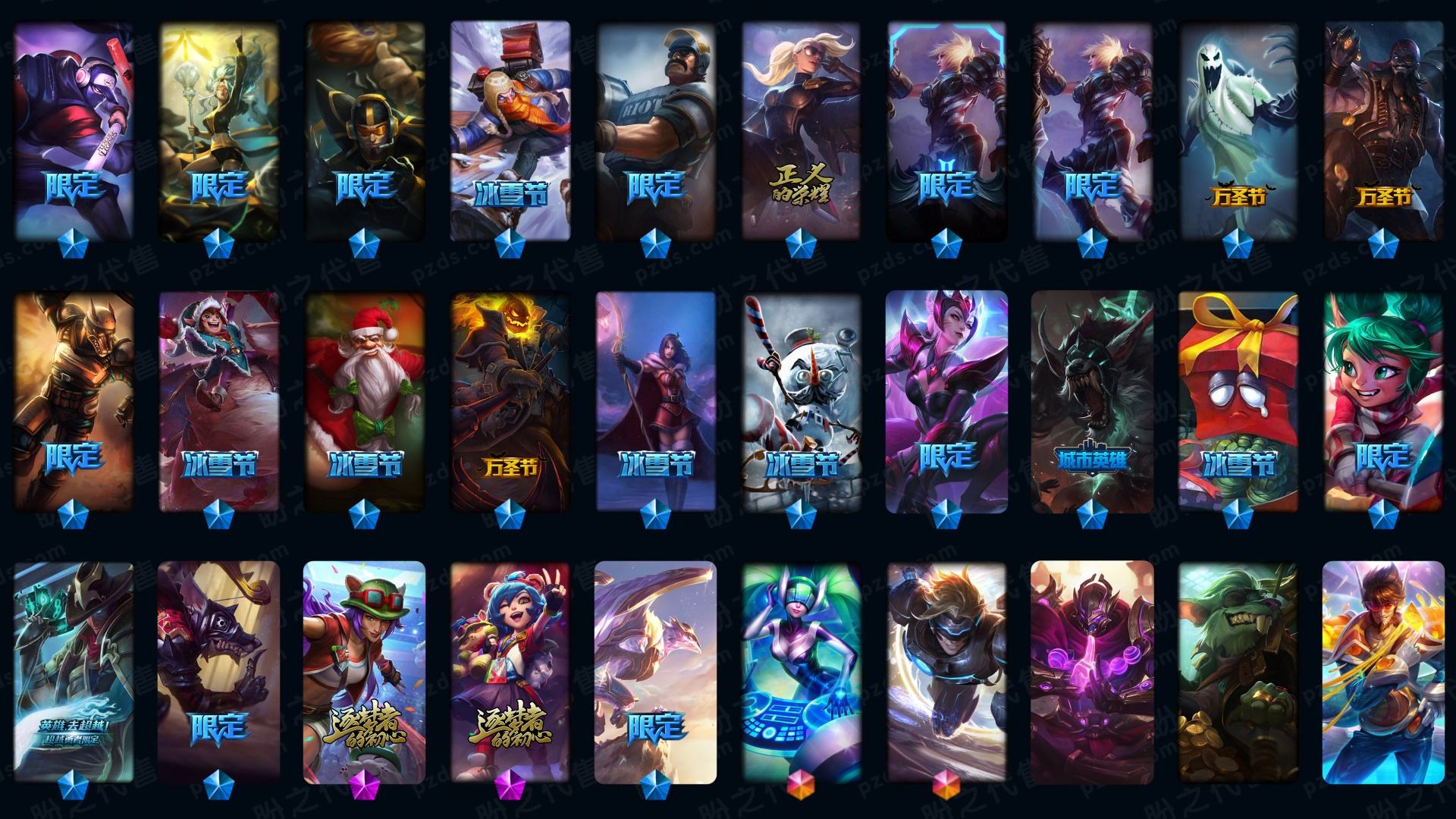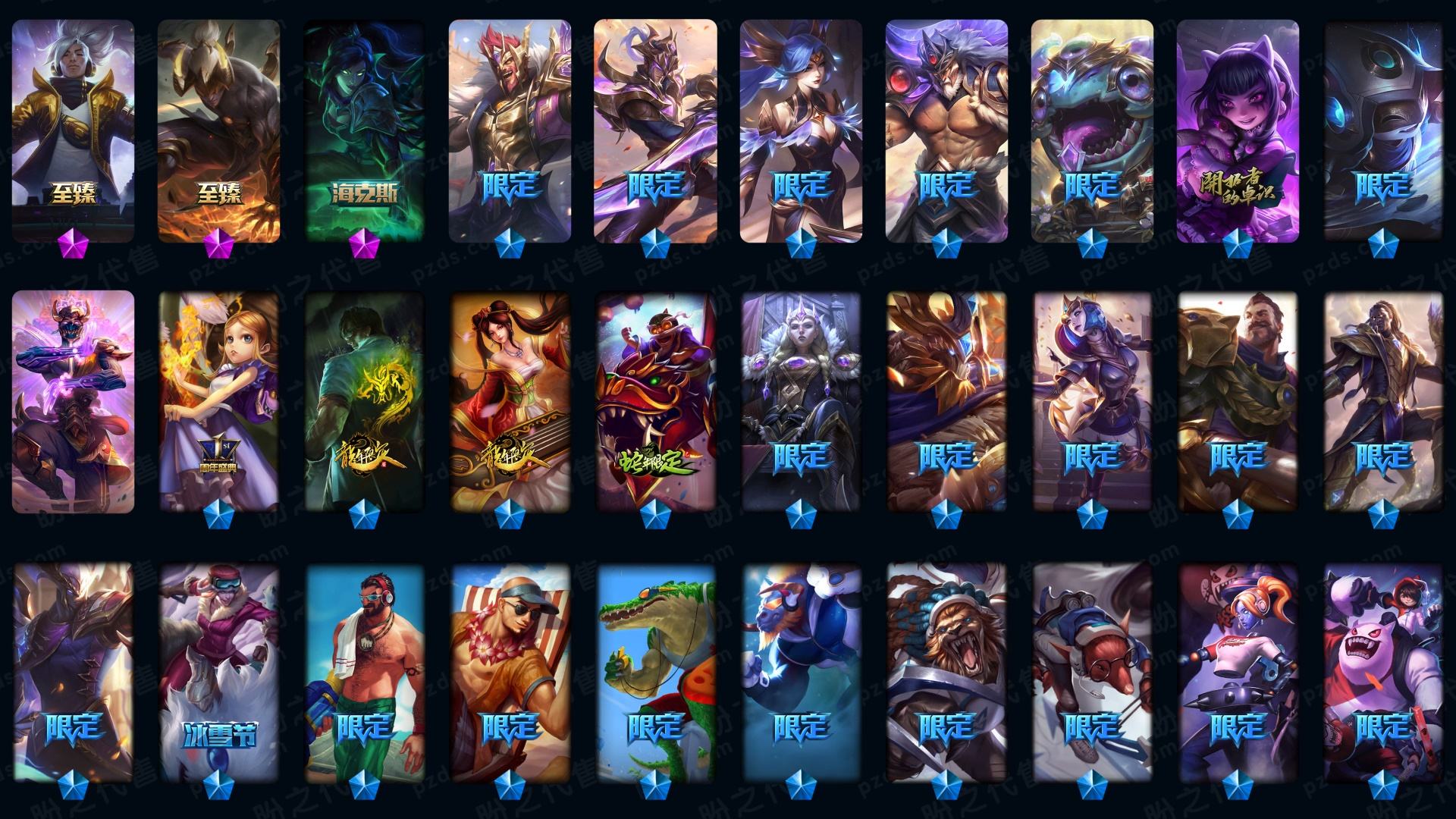 含炫彩711皮丨终极皮3神话10限定89传说45丨SKT全套丨瞎子龙虾丨马年瑞文丨羊年金克丝丨蛇年安妮丨狗年狗头丨狗年金克丝丨赵云子龙丨卡特三国丨恶意撤单拉黑!