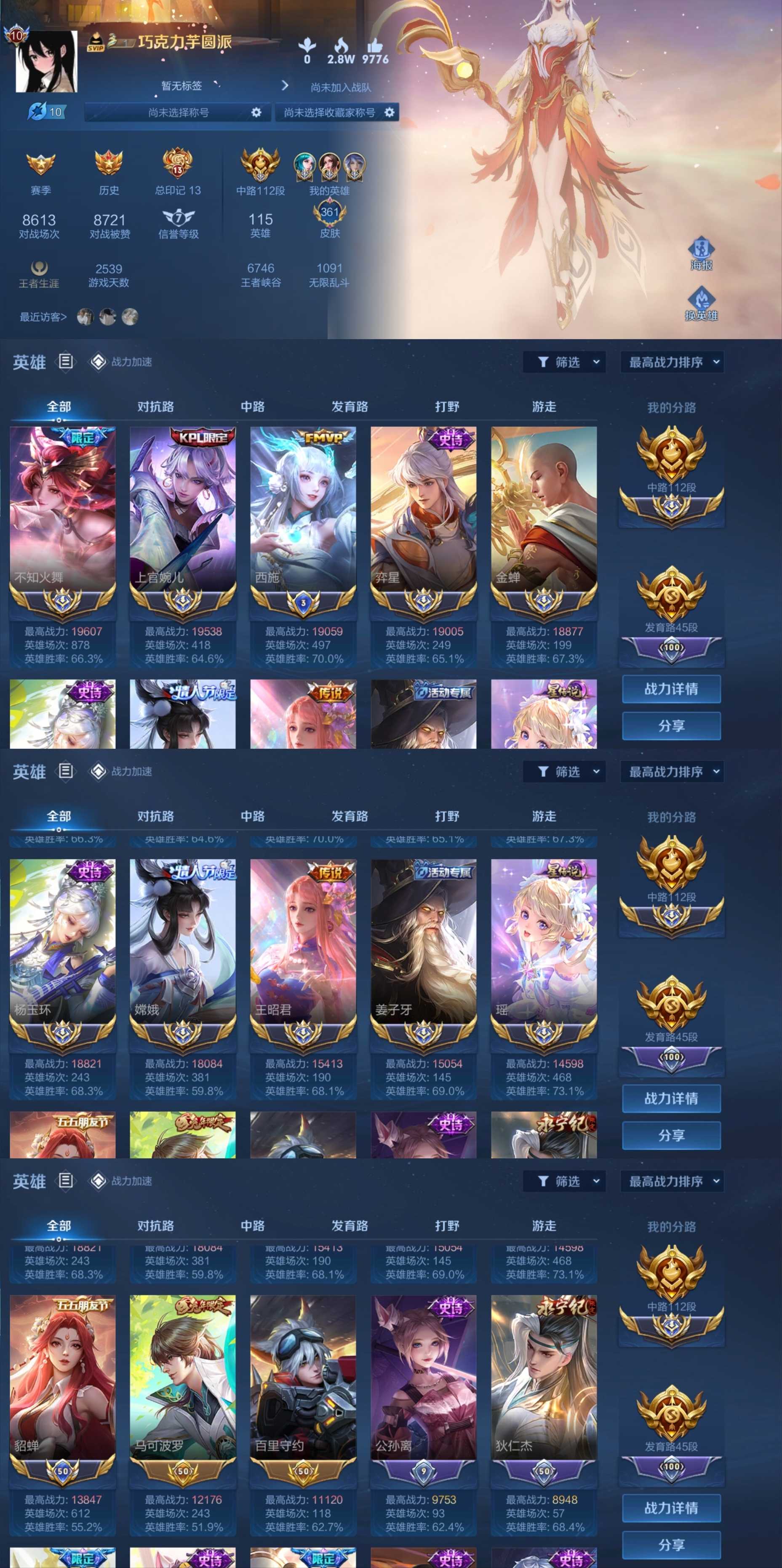 【V10 436皮】历史4小国服1.9w战力嫦娥丶国服马克杨玉环中路60段丶7典藏5星传说60传说皮