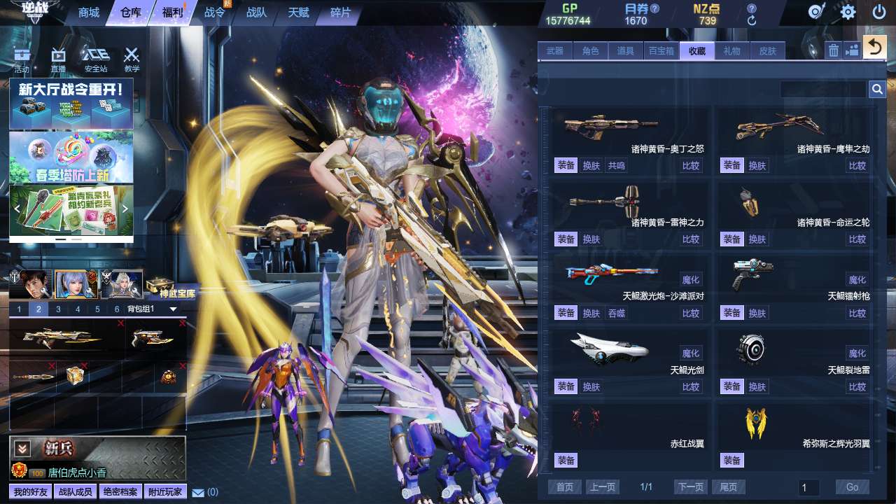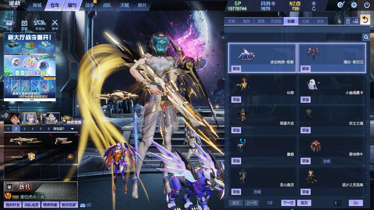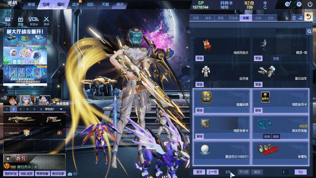 战甲系统:满级战甲Lv3.凌空-飞羽史诗套装:6核神凰套、6核天帝套、陨星套、海神流光天启7件套、诸神套、沙滩派对-天鲲套、创世套竞技套装:虎年套、情人节套装、典藏龙皇套、狼王套、鹰王套、虎王套、哮天犬套、百鸟套人物:虹衣、湘君-幻化元素母爱至上、湘夫人-幻化元素、大司命-母爱至上、琉璃-母爱至上、风来暗刃海瑟薇、破败手路法西-格挡天使、凌星、凌月、雪域魅姬(格挡技能)、初霜(沙滩靓颖)、“未来战士”角色包、“樱忍”角色包、“善恶天使”角色包、角色包翅膀:天帝圣翼-鎏金蔚渊、天帝圣翼-赤绯、赤红战翼、希弥斯之光辉羽翼头盔:量子魔盔、纳菲利姆之甲、龙魂之铠、星辉头盔、月晕头盔、劈地神盔、百鸟面具戒指:耀阳苍龙之戒、纳菲利姆之戒、紫晶、霜染、霜雪之晶、美杜莎戒指、灵魄之戒、阿斯特莉亚之心宠物:矮星人-玛卡、劈地神牛、圣山鹿灵、动天使、星云战车、麋鹿、鲲灵-玥、地狱烈焰犬伴生灵:时空智识双子、海拉-新纪元、仙蒂、古堡晚宴-欧泊、古堡晚宴-艾蓓、捣蛋鬼杰克、小幽灵露卡、诡计之灵洛基、武士之魂坐骑:赤炎钢虎- 斩影、未来战车