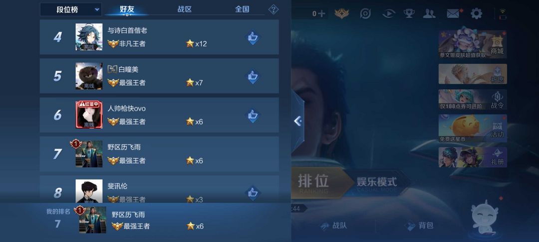巅峰1955银框⭐2月抢先在榜国服兰陵王⭐可以和正式服一起排位⭐可排位禁巅峰