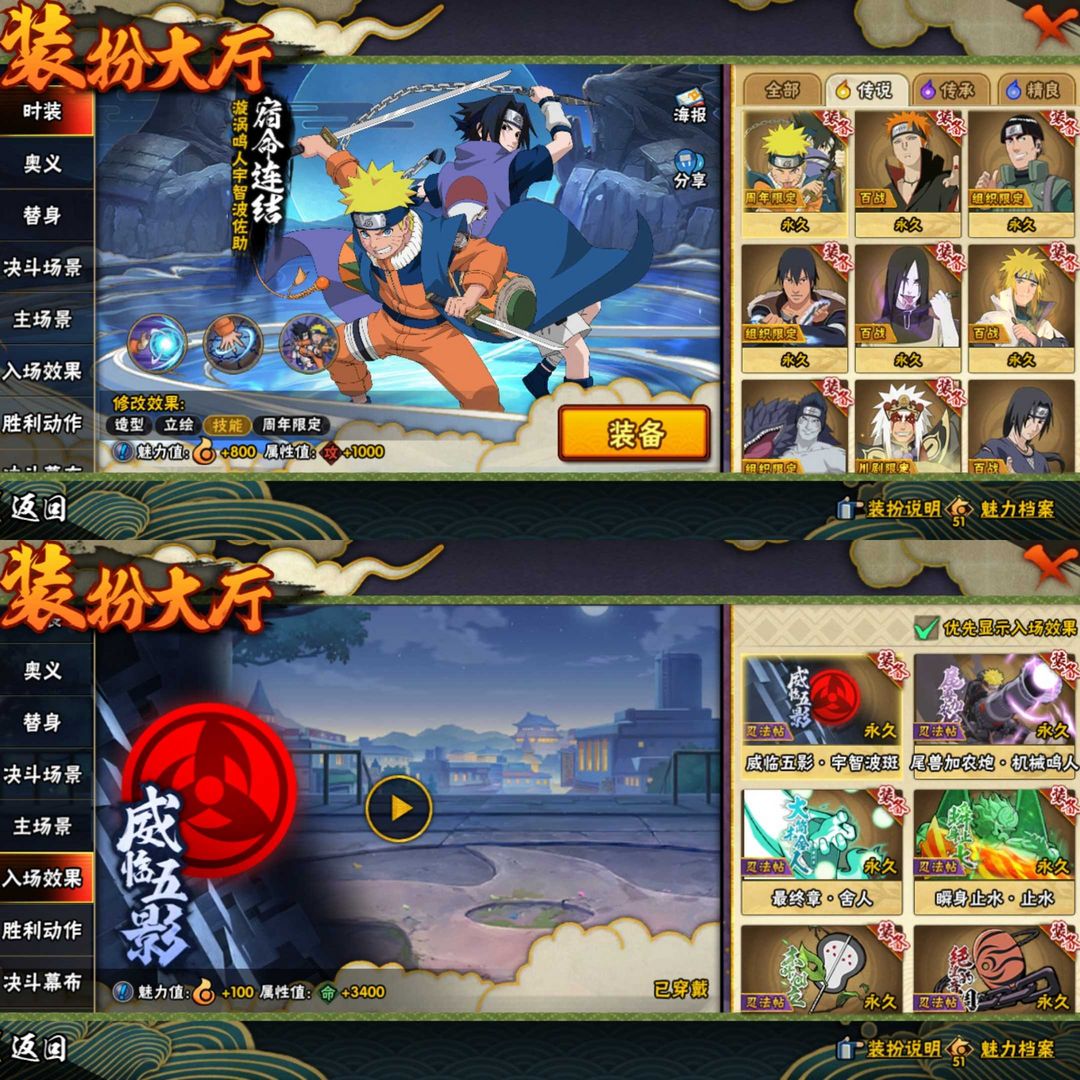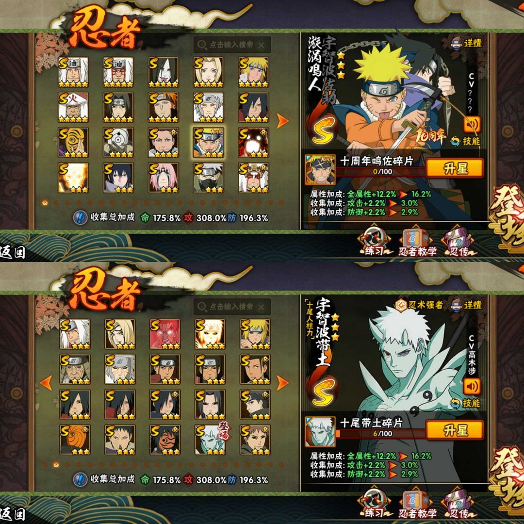 十尾带土、神威卡卡西、漂泊带土、五影会谈斑、秽土解斑、永恒佐助、九尾鸣人、天道超白面具高战全忍者全S