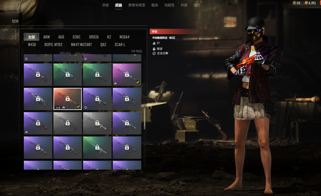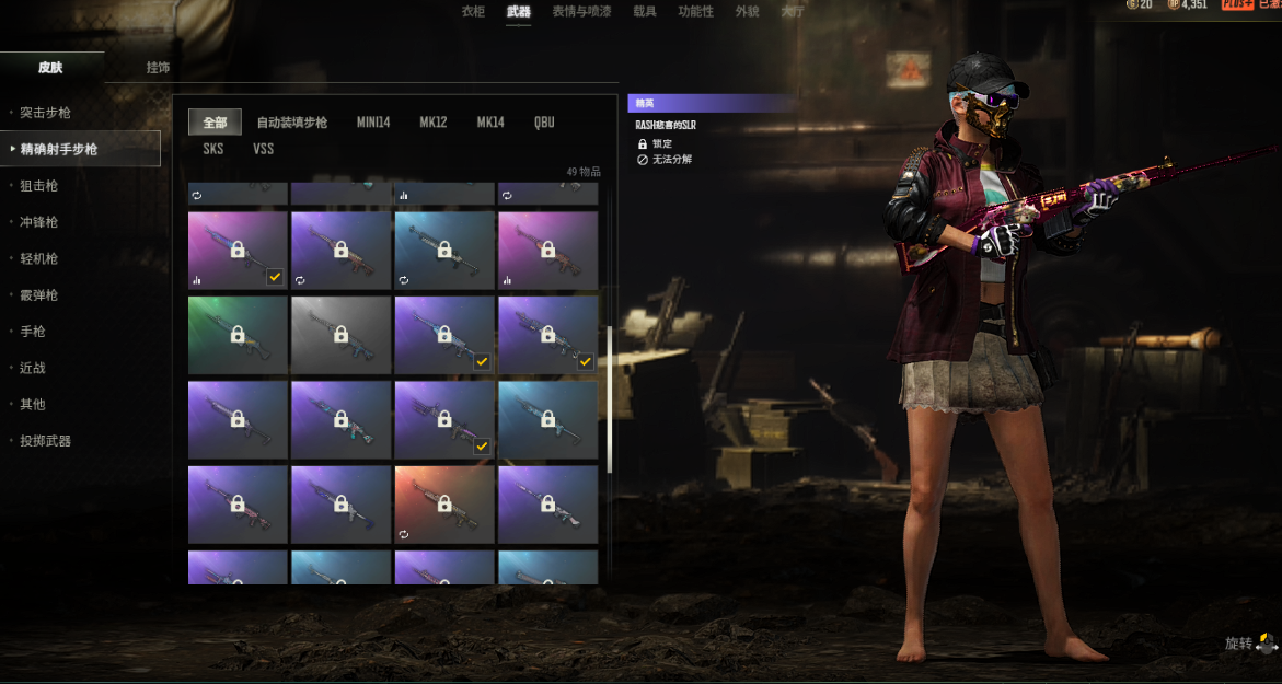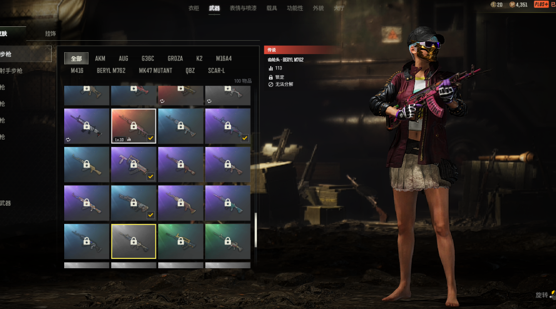 10级762女团套黑鬼丸子头双马尾柏林上衣白裙柏林锅黄金面黑盒手套6级M4悲喜滑雪快手夹克