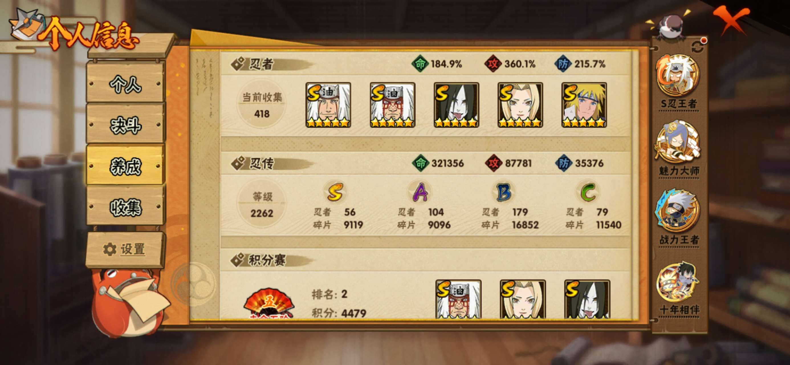首页 > 租号大厅 > 火影忍者 > QQ账号/QQ账号 > (精品号)56S 104A 418忍 3300w战 十尾人柱力带土 金身水门 漂泊土 须佐卡卡西 艾 桃式 解班 创立柱间 永恒…