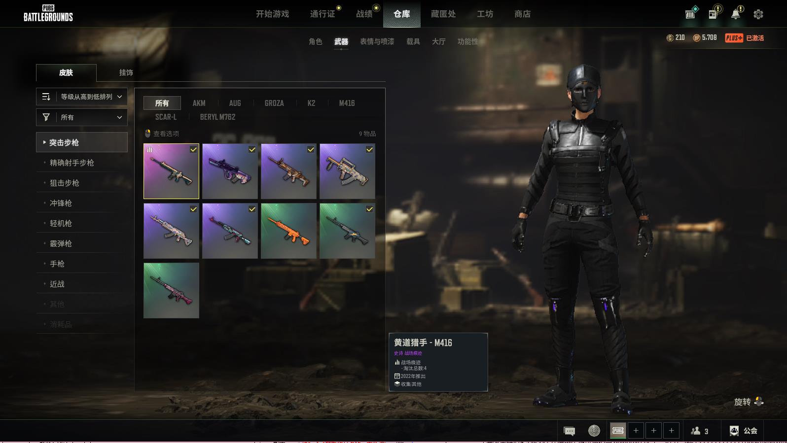 二级密码389389 PUBG豪华版,随机2-4级生存等级,黄道猎手-M416;PGC.2022王牌登场-SLP还有更多随机紫色枪皮可玩,皮肤展示图如下,登陆免验证