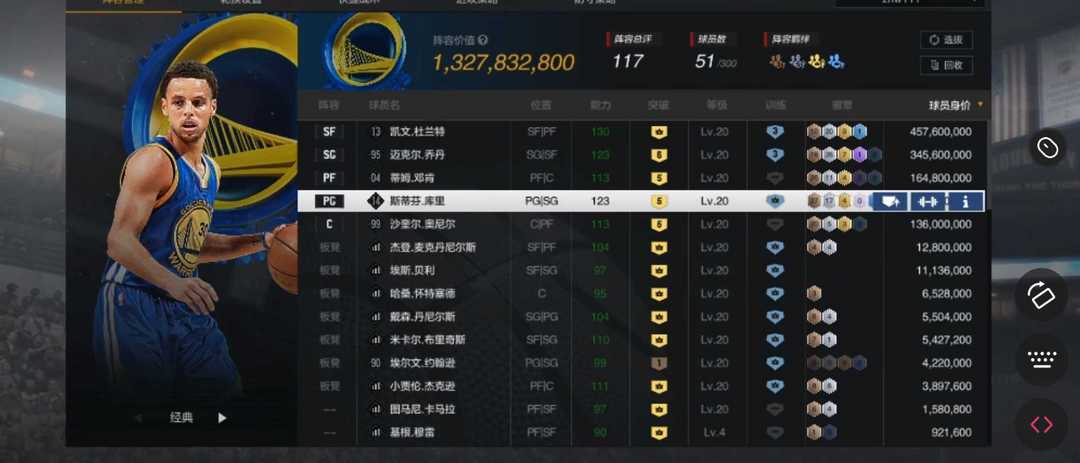 【13E】5库里♥5邓肯♥6突95乔丹紫徽章♥10突雷霆万钧杜兰特♥5突奥尼尔♥有服饰