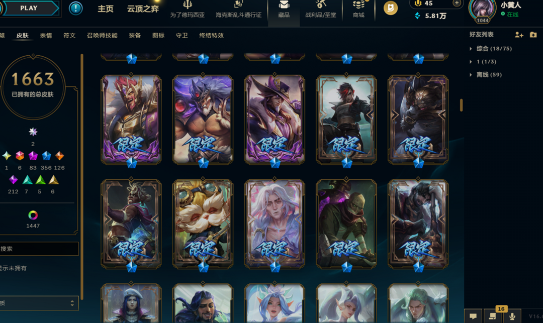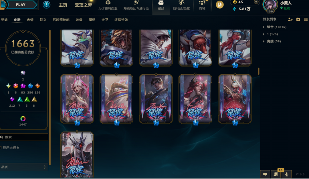 【德玛西亚】168英雄613皮肤/海克斯【皇子,鳄鱼,恐惧新星,VN】至臻妮蔻、至臻剑魔、至臻卧虎藏龙/电玩女枪/电玩人马/冰雪节多个皮肤/烈焰VN/龙虾/美猴