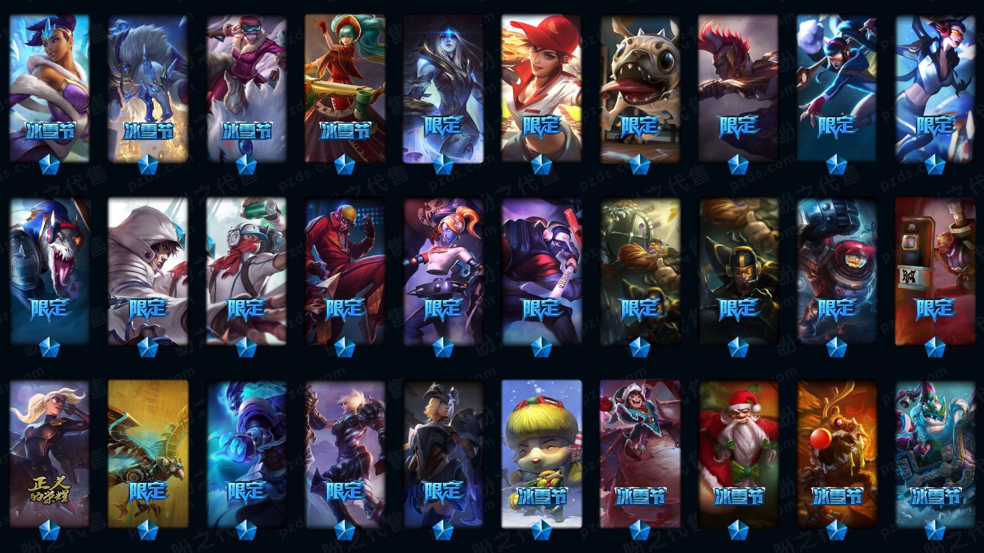1200皮肤◆武器大师万夫莫开◆养蜂人◆全至臻◆摄魂恐惧新星◆小炮粉色萝莉◆诸神的黄昏◆龙瞎◆破空枪骑