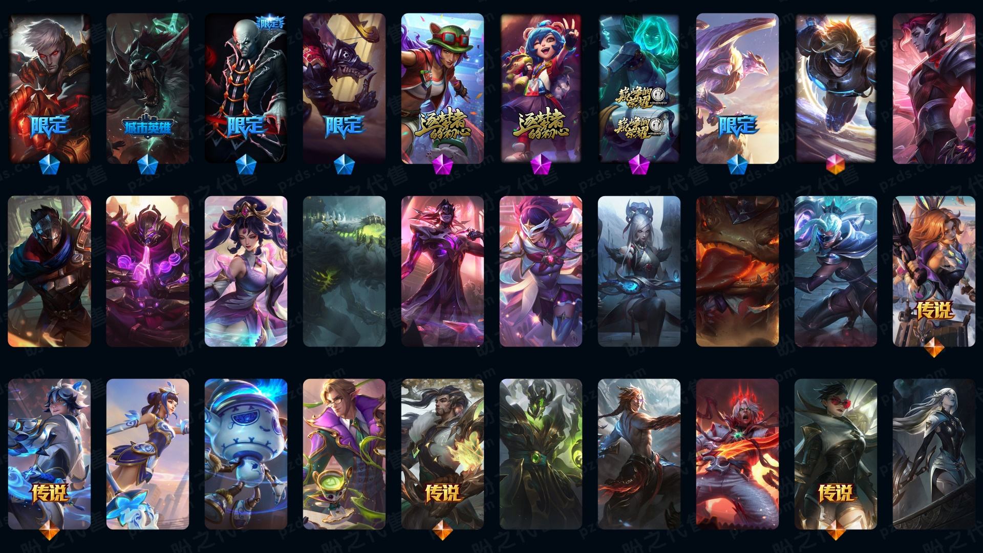 1911皮肤〓可排位妹子号白银〓全英雄〓42神话〓33臻彩〓387炫彩〓至臻卡莎武器艾克阿卡丽冰女〓未来战士新牛兔年龙刀〓神龙尊者套神王黑夜亚索