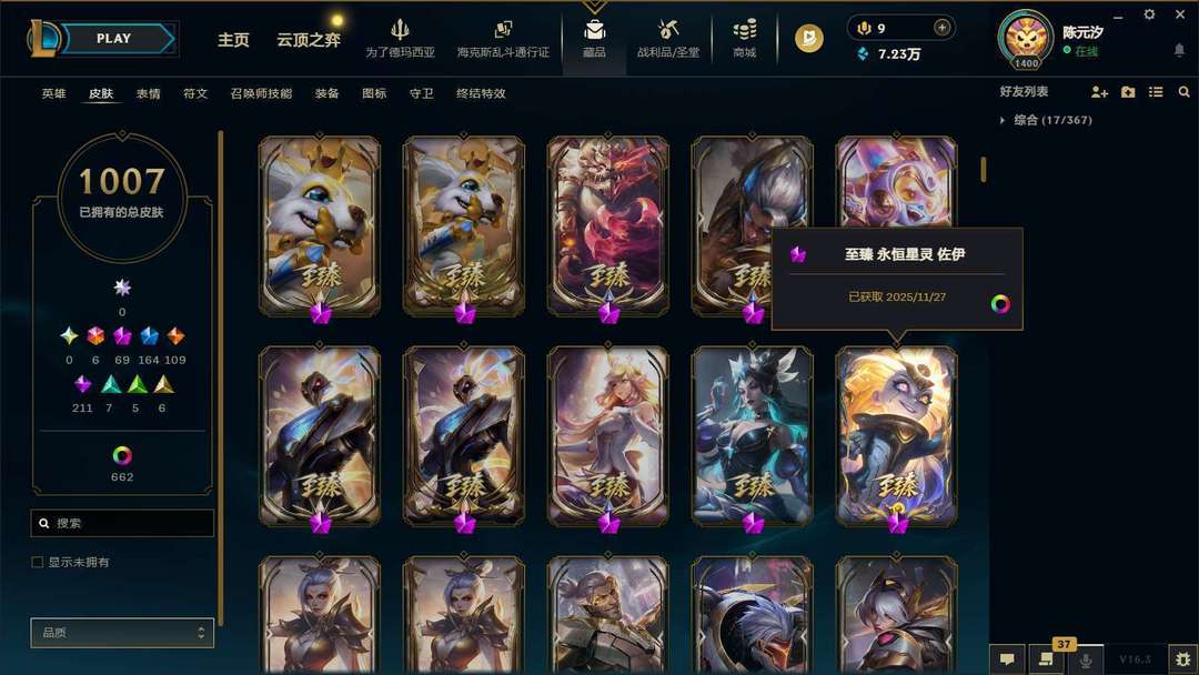 原皮肤1007 炫彩662 妹子号 全英雄 可排位