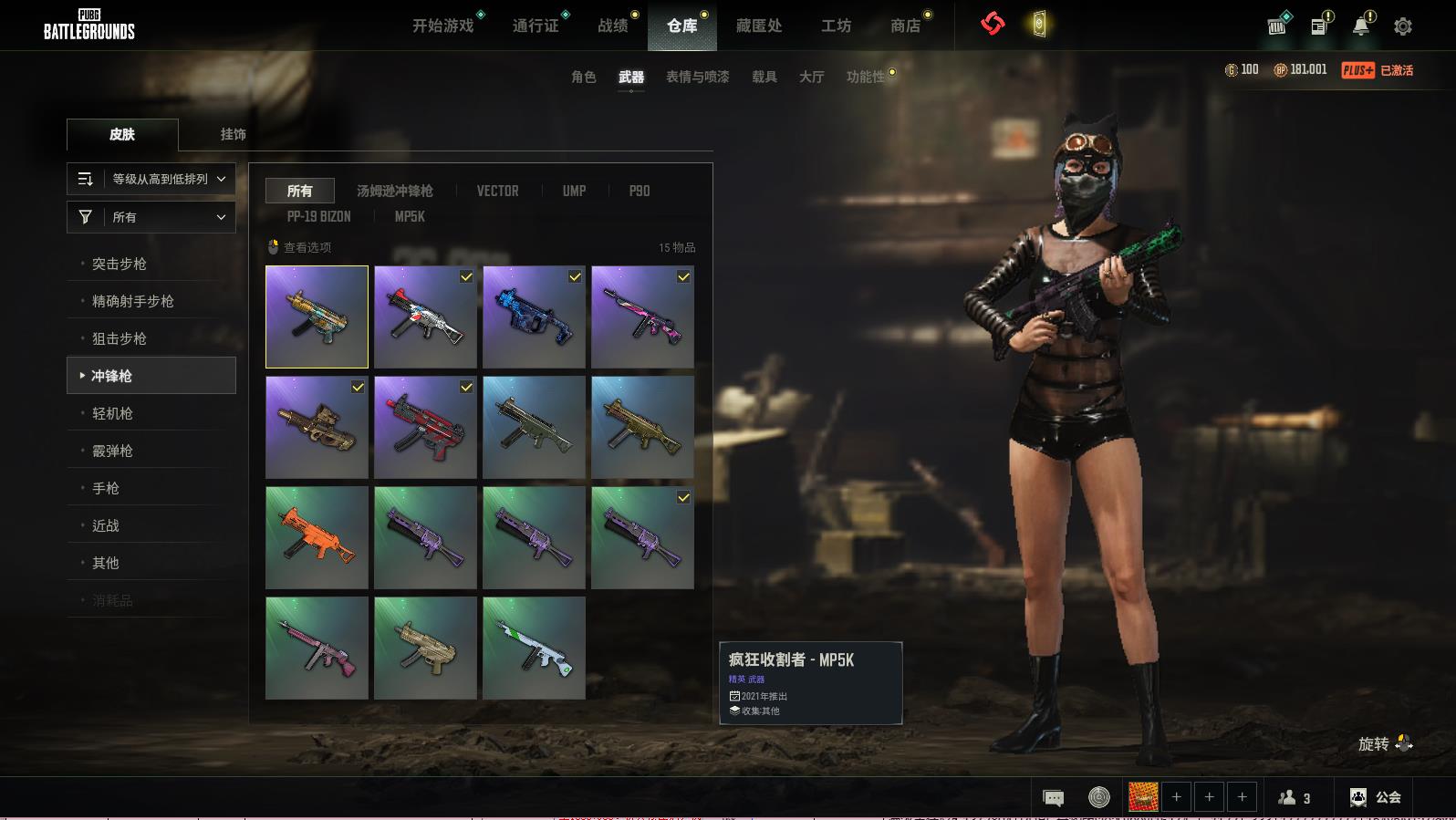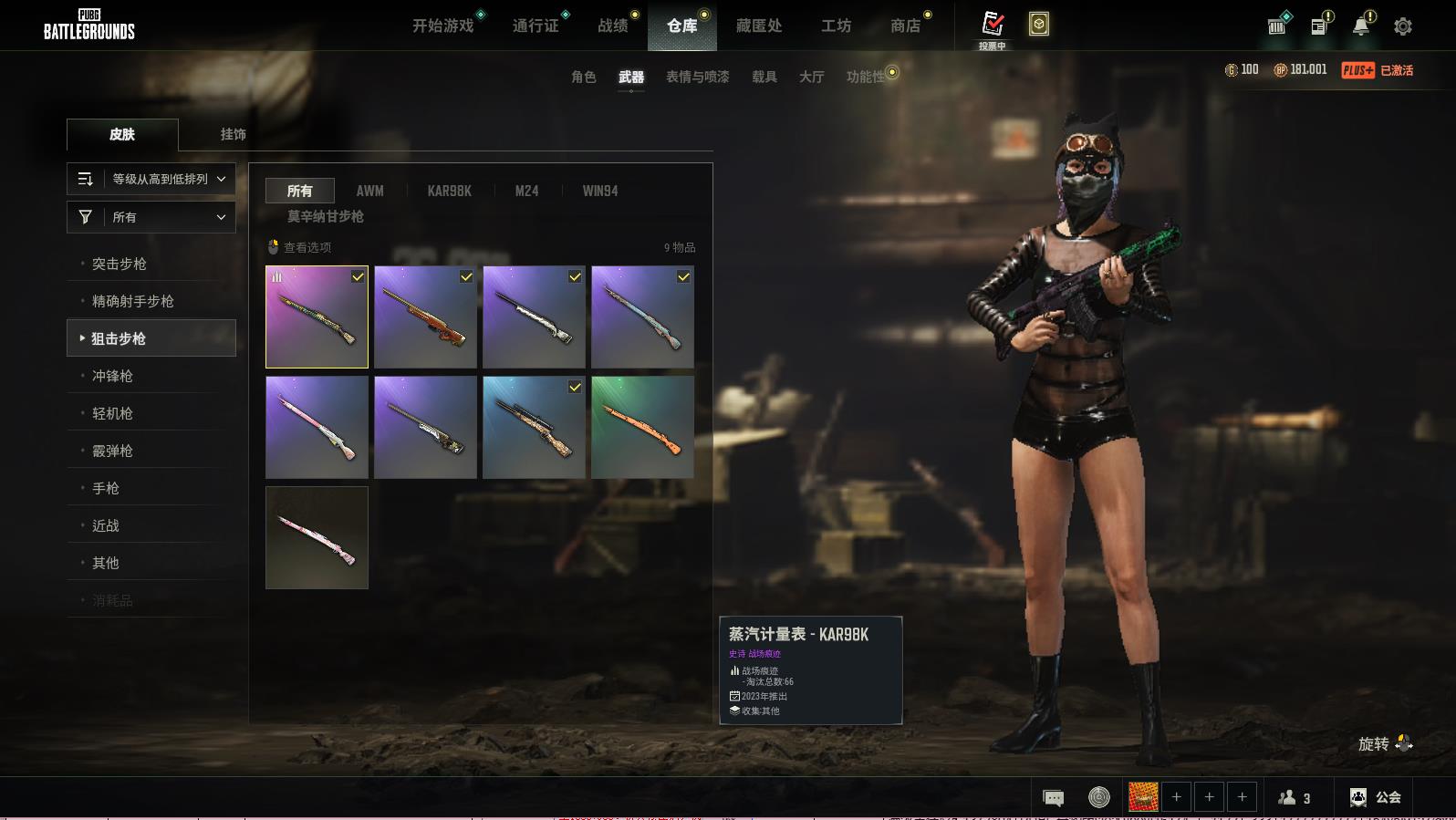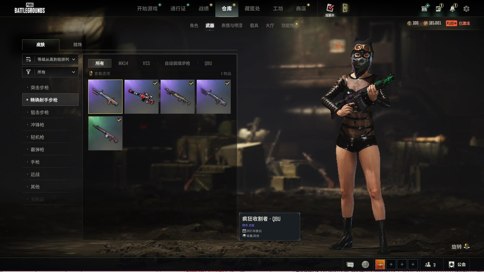 PUBG豪华版满级生存可排位,黄道猎手-M416;猩红时刻-M16A4;蒸汽计量表-KAR98K;三重彩-SCAR-L;镀银-SCAR-L;分秒必争-QBZ;疯狂收割者-SCAR-L;魔女之力-BEPYLM762;多彩科技猫-AUG;雪国风光-M416;竞速之道-AKM;山花烂漫-BEPYLM762;鲜花之力-AKM;灵魂枷锁-AKM;灵魂枷锁-MK47MUTANT;蟒蛇花园-M416;天拘来世-K2