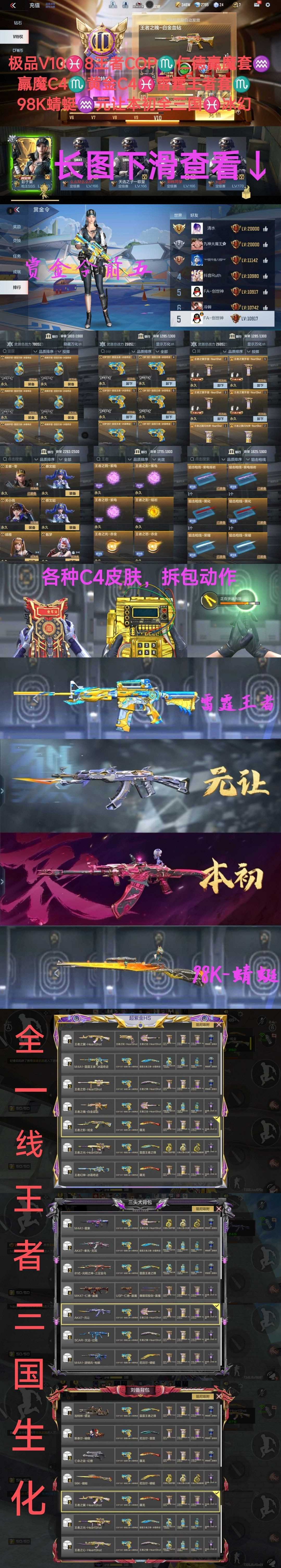 >>>>>>毁号,涉及毁坏虚拟财产罪及计算机安全罪,请文明游戏素质游戏,让我们共建美好租号平台>>>>>> 本游戏账号:英雄武器202个, 王者武器18个。军衔: 荣耀元首,段位: 枪皇S,拥有:云悠悠,子涵,樱,等7个角色。装备齐全让你拥有完美游戏初体验,特殊装备有:AWM-裁决、巴雷特-雷霆、王者之啸、MK47-机械纪元、剑齿虎、王者之灵、AK47-机械迷城、MK23-机械纪元、巴雷特-枪娘、尼泊尔-雷霆、MK5-极光、AK47-心动次元、王者之轮、暗杀神、王者之怒、王者之翼闪光弹、左轮-黑武士、麒麟刺、斯泰尔-蝴蝶、王者之神、王者之翼、激光毁灭者Ⅲ、巴雷特-金色蔷薇、M4A1-竞界荣光、AA12-竞界荣光、王者之光、王者之迹、王者之心、巴雷特-雷神、AUG-机械纪元、地狱烈炎、王者之翼烟雾弹、黑武士手雷、沙鹰-火麒麟、王者之魂、王者之击、王者之势闪光弹、王者之势烟雾弹、王者之烈、双持沙鹰-雷麒麟、尼泊尔-机械纪元、王者之魄-冠军珍藏、虎头湛金枪、CZS2-心动次元、云悠悠、关小雨、等,随意畅选。 注意事项: A.游戏过程中请不要恶意挂机或者不文明发言 B.恶意挂机、顶号等行为将被