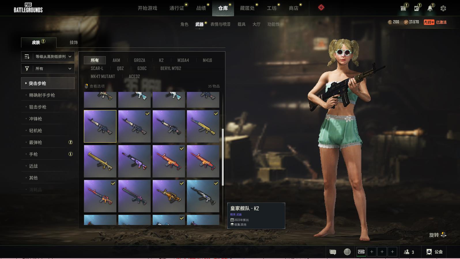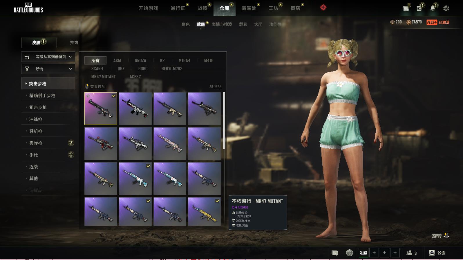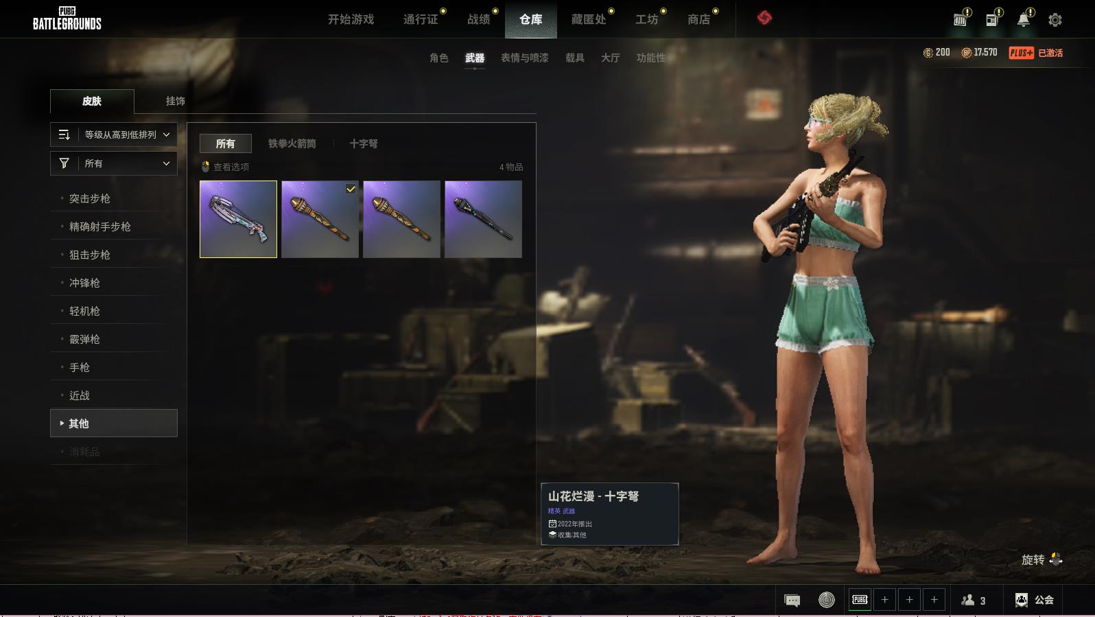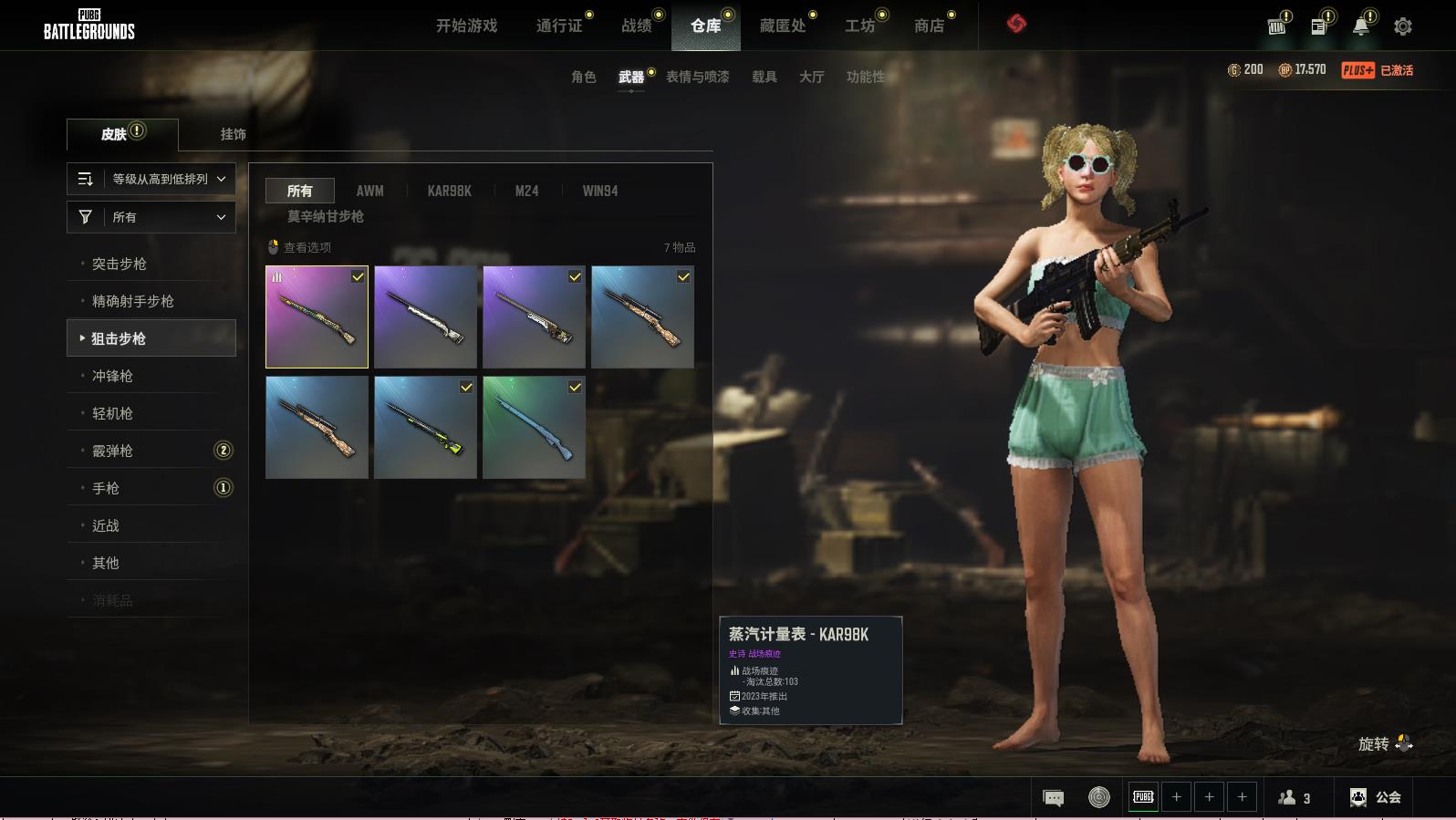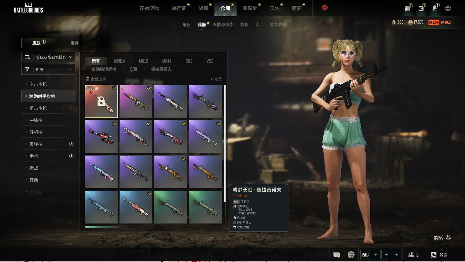 PUBG豪华版,随机2-4级生存等级,粉梦长眠·德拉贡诺夫Lv23;不朽游行-MK47MUTANT;瓦尔哈拉-SLR;蒸汽计量表-KAR98K;辉煌-UM