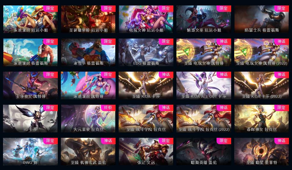 艾欧尼亚/黄金/全英雄/1122皮肤/终极2/神话27/限定121/臻彩17/炫彩321/