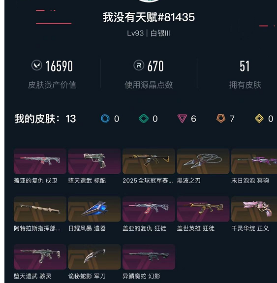 首页 > 租号大厅 > 无畏契约-wegame > wegame/wegame > 可排位1.6万库存超值虐菜号〓2025冠军异鳞魔蛇幻影盖亚复仇盖世英雄狂徒〓黑波之刃末日泡泡堕天遗武