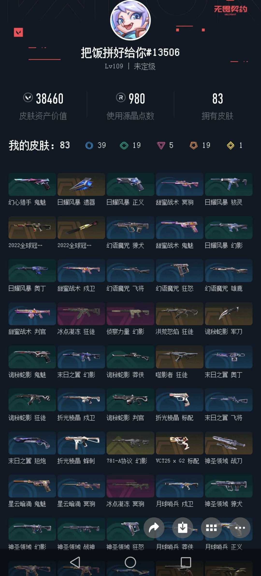 首页 > 租号大厅 > 无畏契约-wegame > wegame/wegame > 可排位+显卡套+VCT爪刀+24冠军+剥皮+太刀+混沌狂徒+盖亚狂徒+侦查幻影