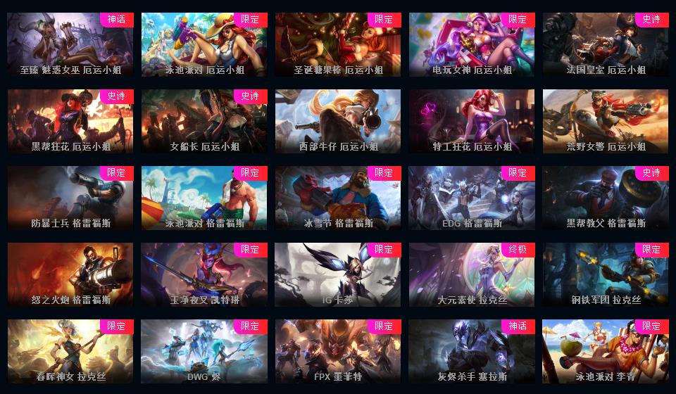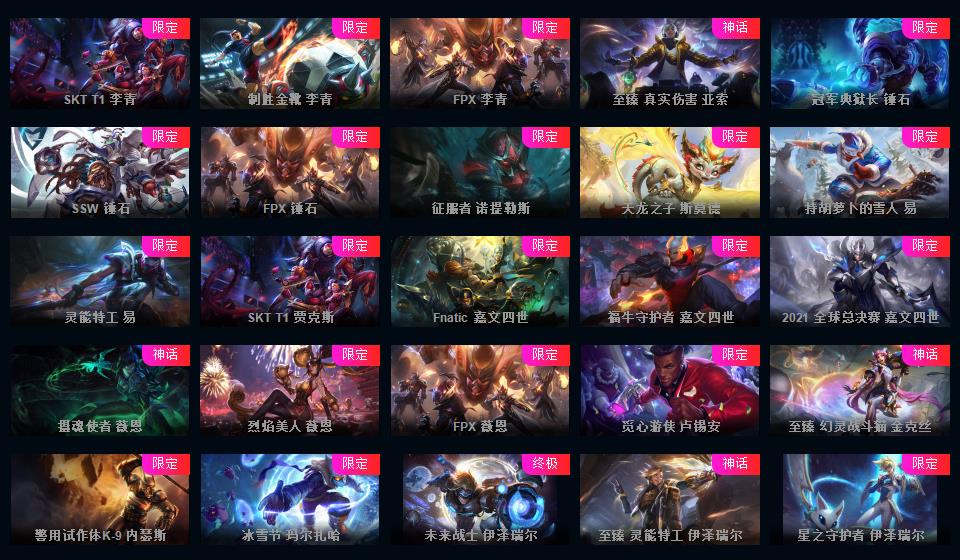 👼 皮肤帝实时更新皮肤 1008皮肤 龙虾 征服者 海克丝系列 主播级土豪号 梦游仙境 花木兰