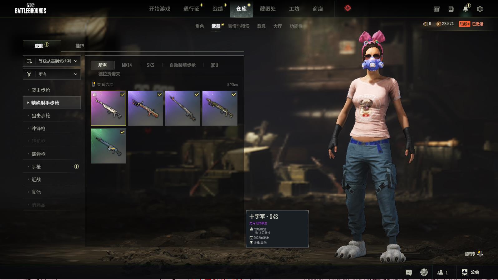 二级密码389389 PUBG豪华版,随机2-4级生存等级,妖魔之触-ACE32;十字军-SKS;珍珠王朝-AWM还有更多随机紫色枪皮可玩,皮肤展示图如下,登陆免验证