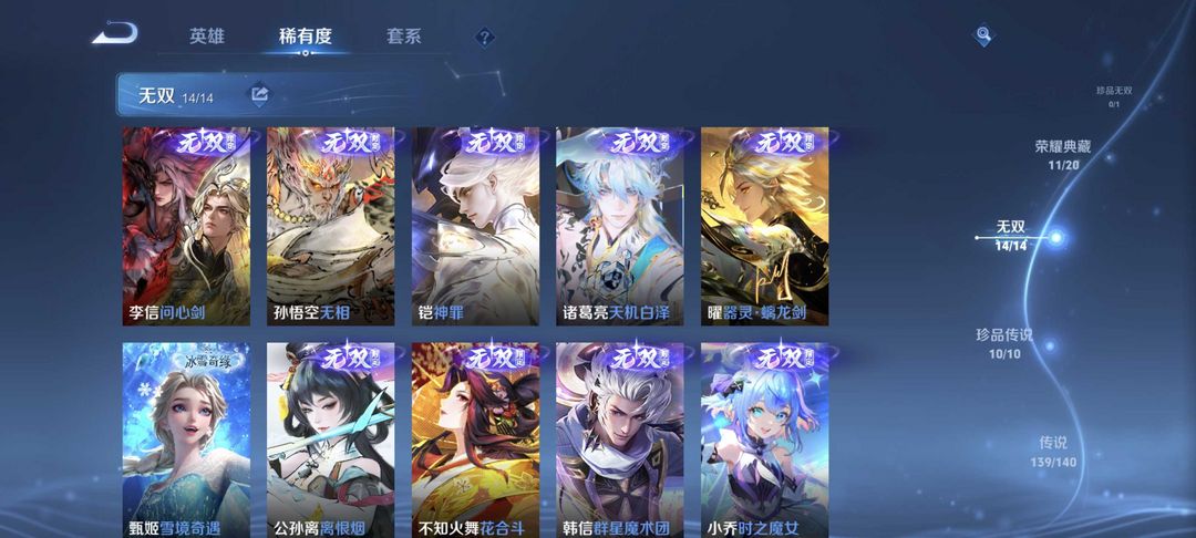 【非云直上】V10★皮肤榜一★539皮满典藏★鲁班时之奇旅会员★虞姬黛羽霜翎星元★吕布白金战神★全能大师★多金标★个性按键