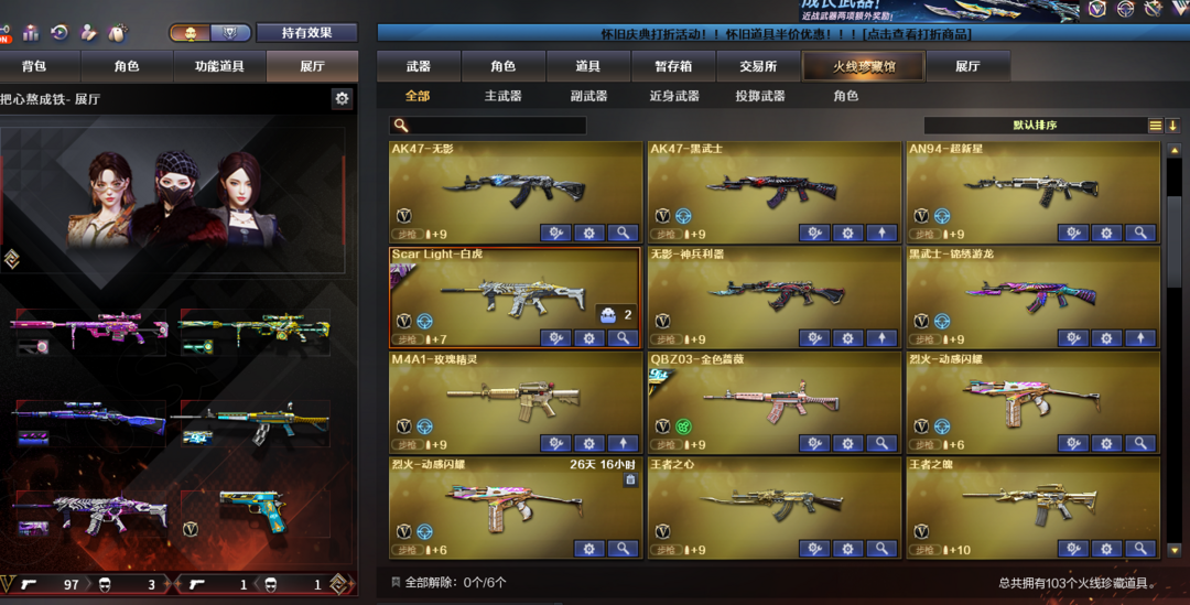 【103V大师5】传说艾莉莎✨幻神宠儿青鹤✨星神璀璨裁决音效✨QBZ音效冠军微白虎音效暗星③柯尔特