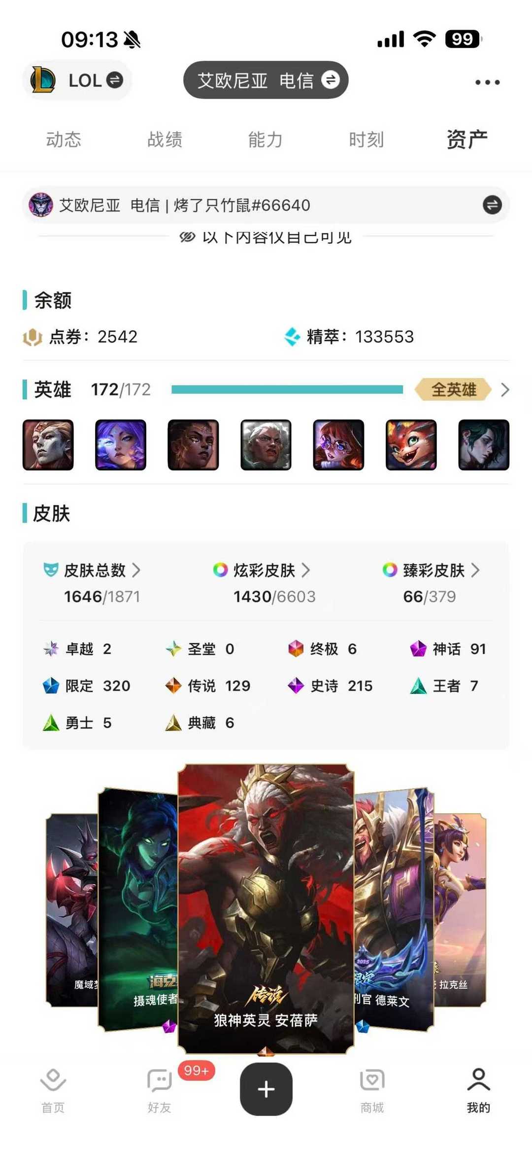 立即租号首页 > 租号大厅 > 英雄联盟 > 艾欧尼亚/艾欧尼亚 > 殿堂卡莎1646皮91神话66至臻❤️传说全皮❤️云顶小小至臻神龙亚索❤️殿堂阿狸❤️神龙尊者