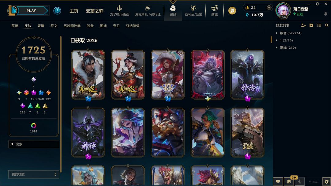 1725皮+2000炫♥️80臻彩♥️四区可排♥️圣堂佛耶戈金克斯铁男♥️龙虾冰桶♥️年限踏雪寻梅