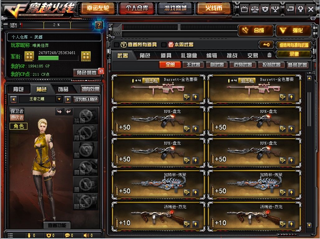 • 游戏区服:穿越火线 / 电信区 / 四川一区