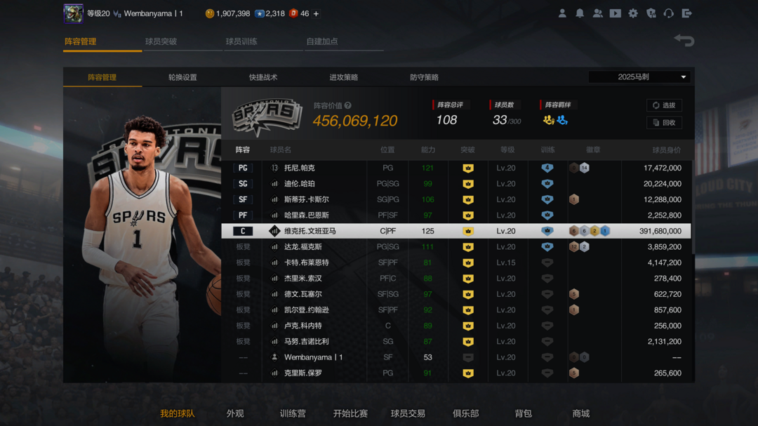 首页 > 租号大厅 > NBA2KOL2 > 全区全服/全区全服 > 【满突文班】⭐10突状元-文班亚马⭐10帕克 吉诺比利 迪伦哈珀 卡斯尔 福克斯⭐马刺队套