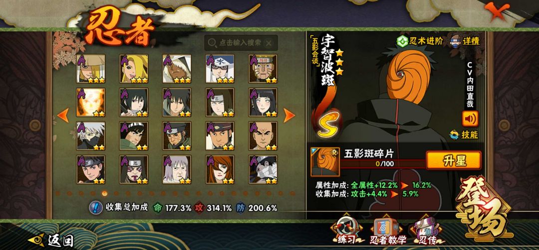 3330w✨54s✨高招全忍者✨性价比首选✨4星鸣佐✨解斑✨一页四星✨团本无压力