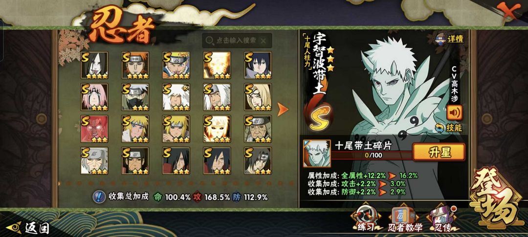 十尾带土,暴怒,鸣佐,九喇嘛水门,传说自来也,绯蝎,须佐卡卡西,忍战李,秽土柱间,天道超