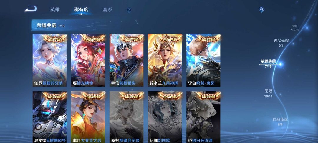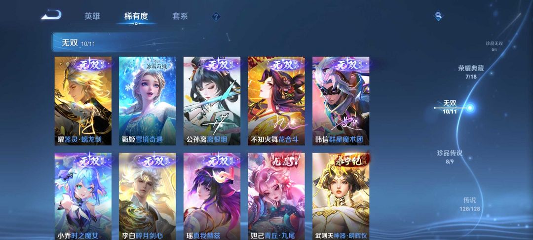 V10、550皮14水、吕布典藏-千魇归渊、云缨-神骥·越千峰、怪盗基德、伽罗星传说红枫、瑶典藏拾光映像、冥王哈迪斯、、龙年限定、齐天大圣