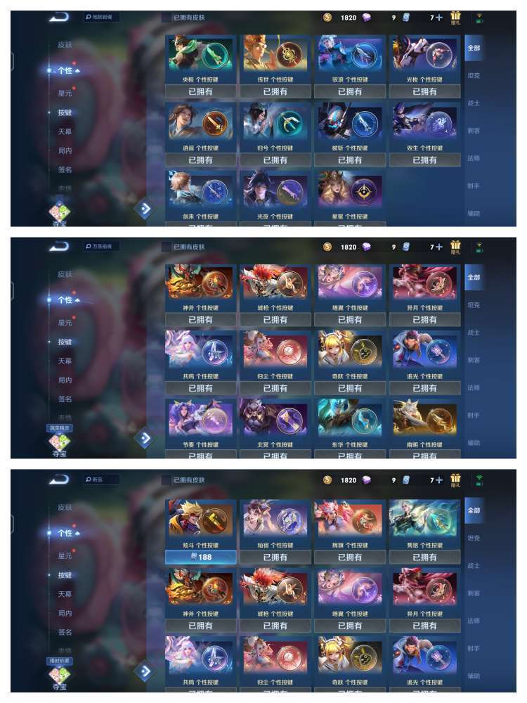 【天花板V10】535满皮满典藏/大乔时之奇旅新皮/虞姬星元/白金战甲/个性按键★多星元部件