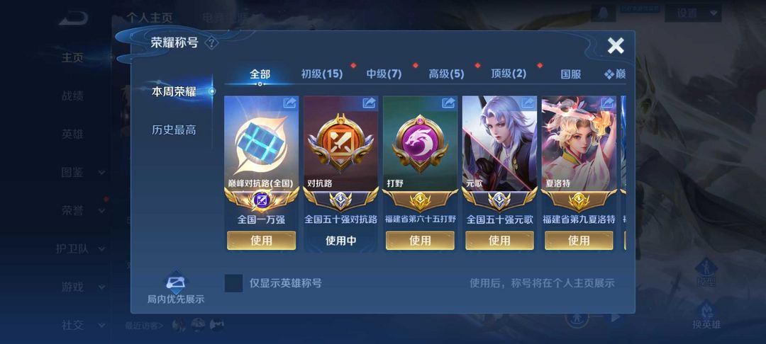 立即租号首页 > 租号大厅 > 王者荣耀 > 标题写明区服/QQ > 本周在榜国服50强元歌⭐巅峰1900⭐89段对抗路❤️五国服李白吕布等等满屏国标