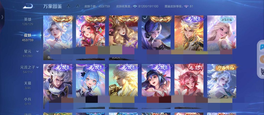 【非云直上】V10★皮肤榜一★539皮满典藏★鲁班时之奇旅会员★虞姬黛羽霜翎星元★吕布白金战神★全能大师★多金标★个性按键