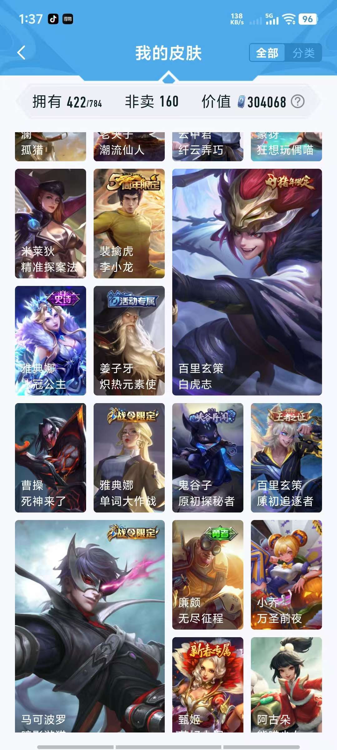 【非沄直接上号】极品V10★三历史国标★430皮★六典藏★诸葛亮新典藏★虎年五限定★鸣剑戈影★活力突击️★多限定