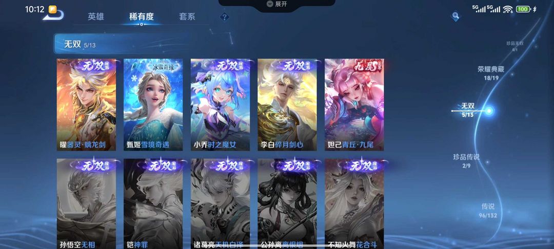 v10、12典藏520皮、马超无双飞将、韩信典藏、马可深海之熄、瑶珍品传说大耳狗之梦、青丘·九尾、枫霜尽、绯月行、前尘镜、至尊宝、天魔缭乱